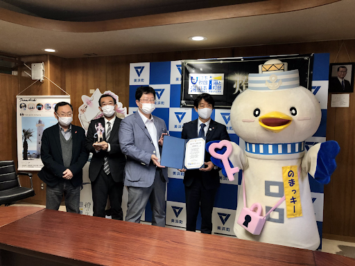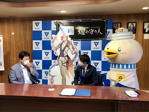 愛知県美浜町「野間埼灯台」を擬人化したキャラクターが完成!「燈の守り人」製作委員会プロデューサーが八谷充則副町長を表敬訪問しキャラクター贈呈式を実施しました