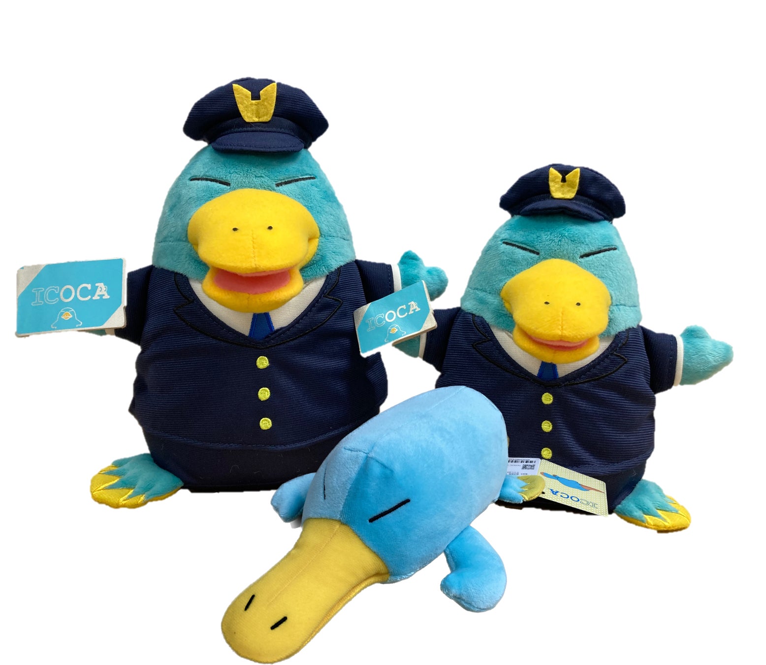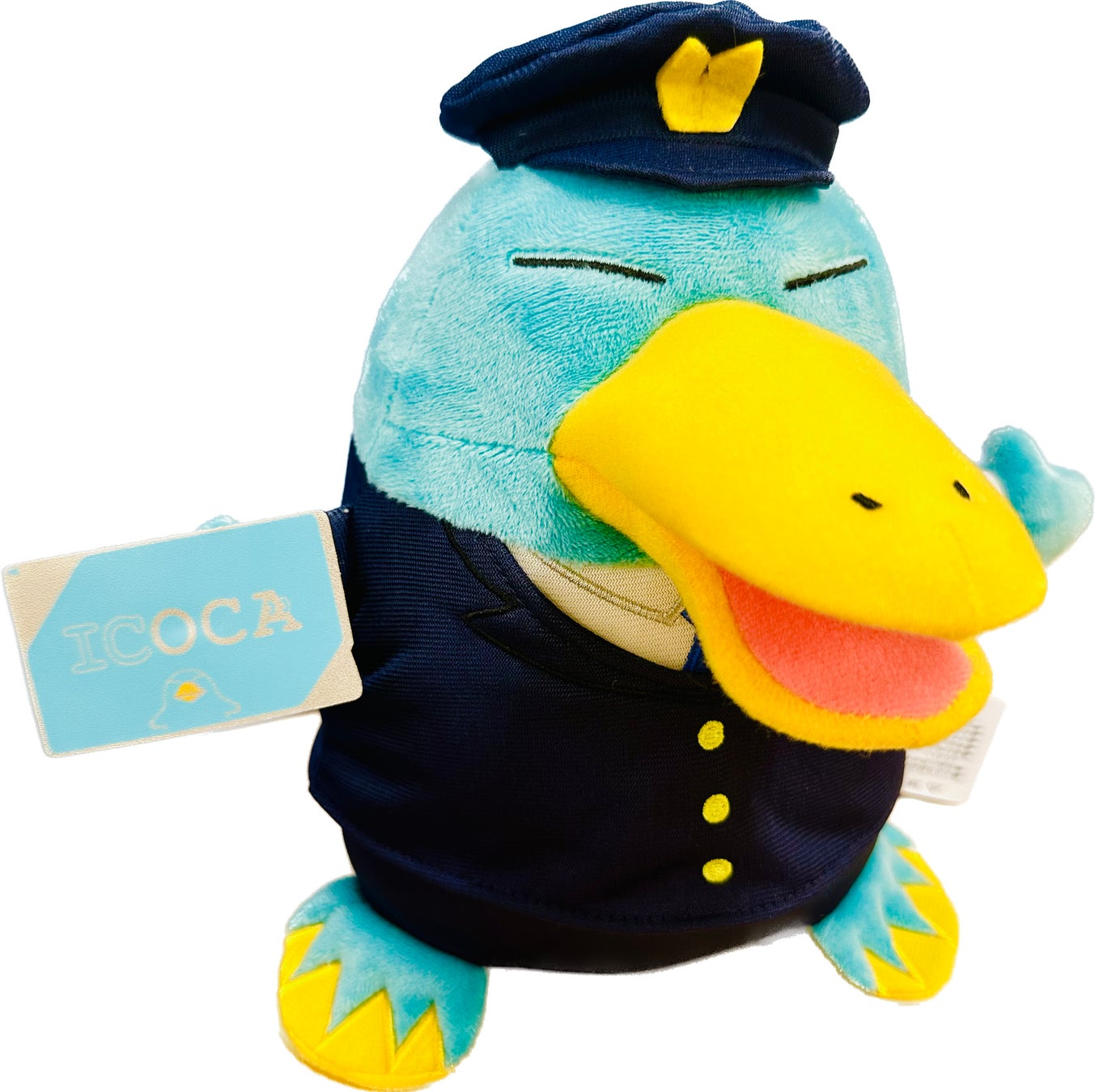 フェルト素材の「ICOCAカード」を持った駅員さんの制服を着た「カモノハシのイコちゃん」の可愛いぬいぐるみになります。SとMの2サイズ展開! 他にも可愛いイコちゃん新商品が盛りだくさん♪