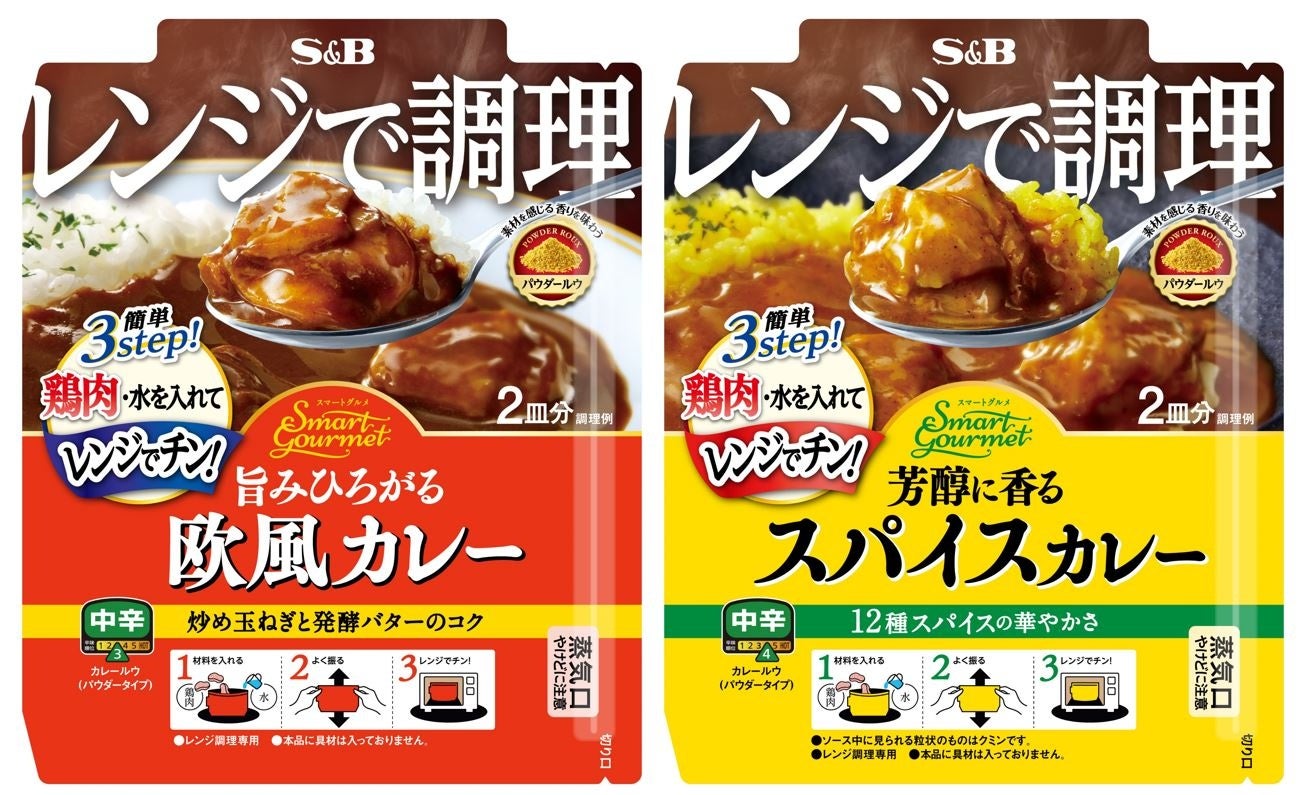 エスビー食品株式会社は、電子レンジで調理が可能な専用パウチ入りパウダールウ「スマートグルメ 欧風カレー 中辛」「スマートグルメ スパイスカレー 中辛」を、エリア限定で新発売します。