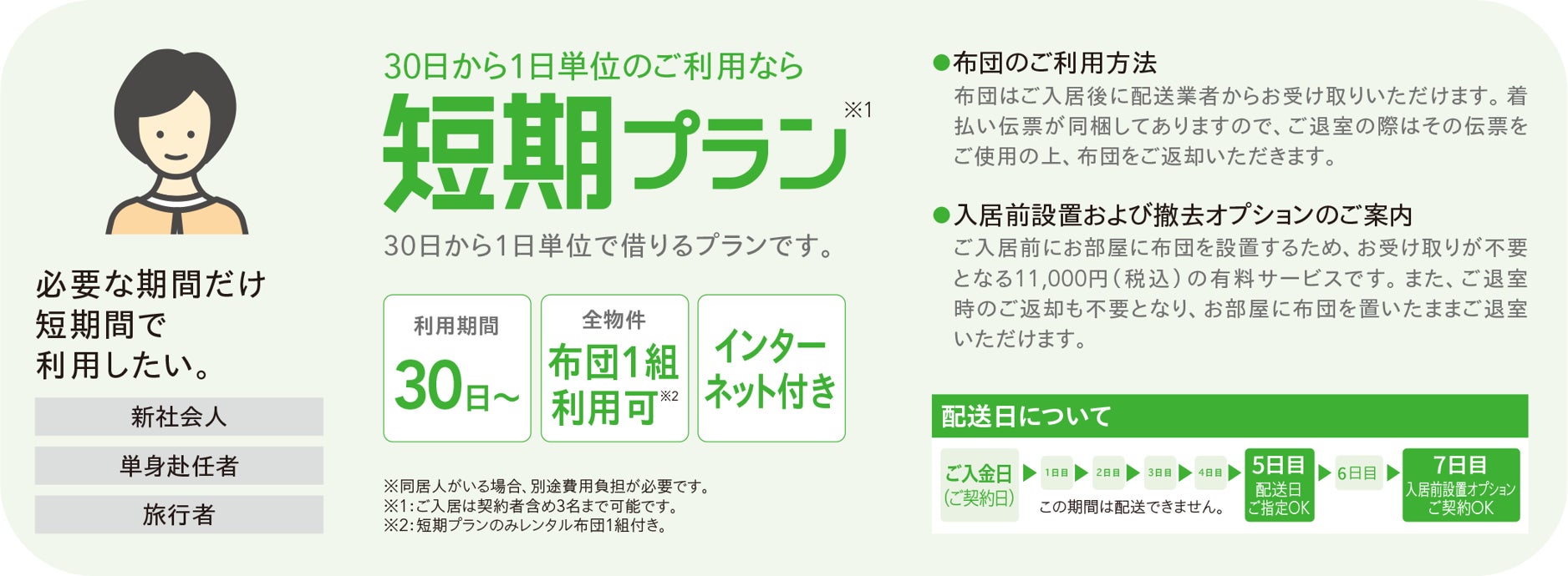 株式会社レオパレス21(東京都中野区 代表取締役社長:宮尾 文也、以下「当社」)は、4月1日より、お客様により良い暮らしを提供できるようにプランを見直し、短期プランのリニューアルを行いましたのでお知らせいたします。