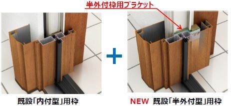 付枠の場合、これまでは住宅の躯体へ留め付けられる「半外付枠用ブラケット」をオプションで用意していましたが、現地で取り付ける必要がありました。今回のリニューアルでは、ブラケットを取り付けた状態で出荷し、既設「半外付型」用枠として新たに設定します。これにより、現場での施工時間が約15分短縮されます。