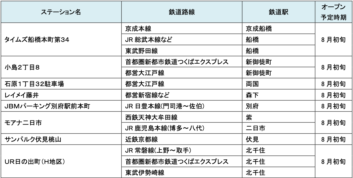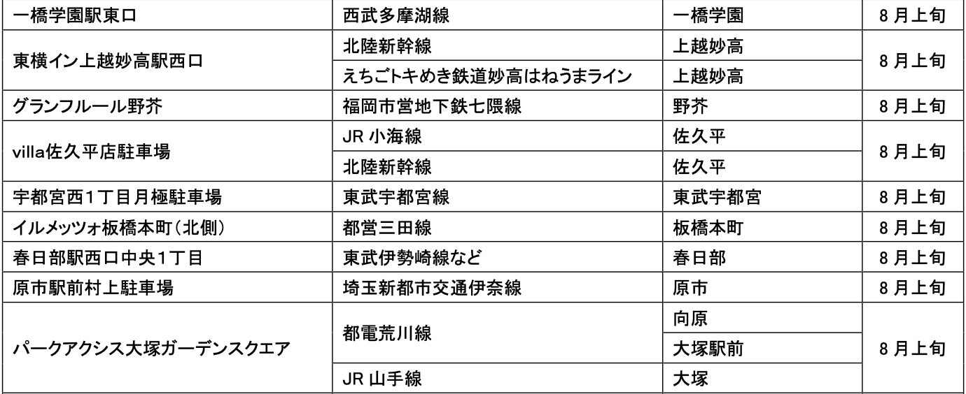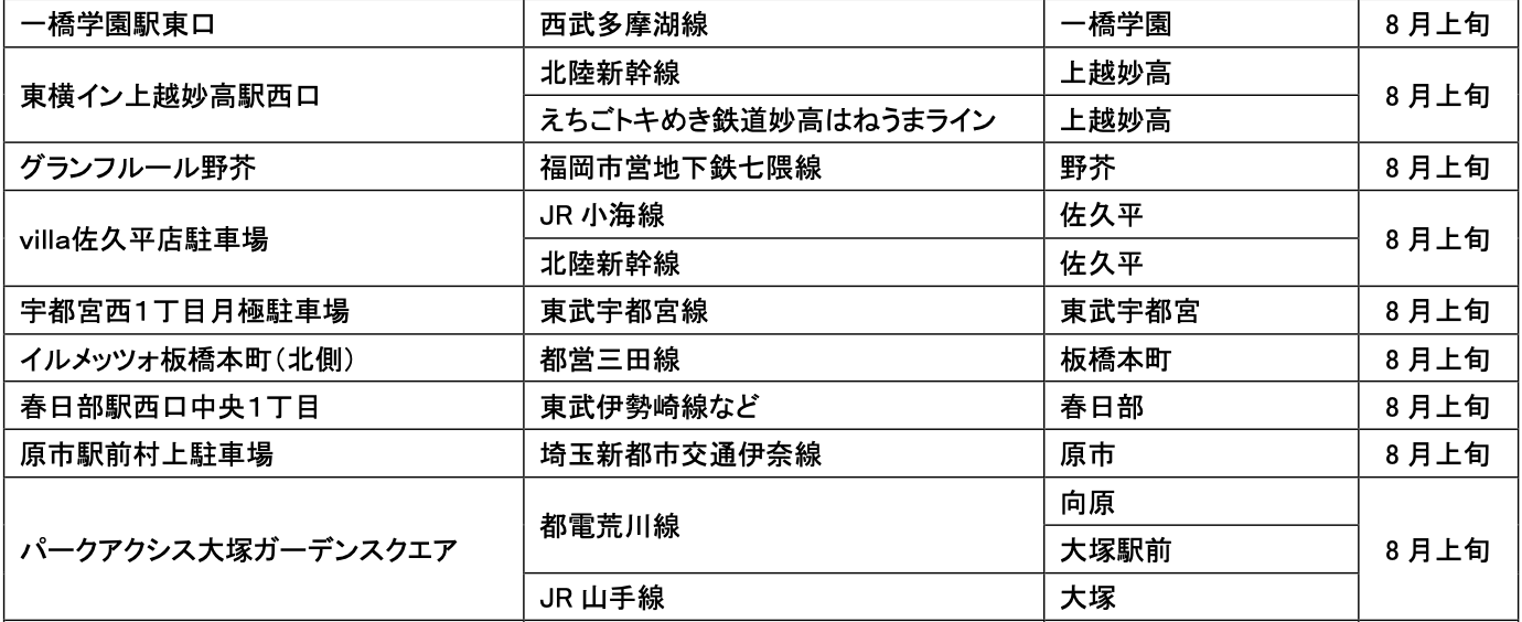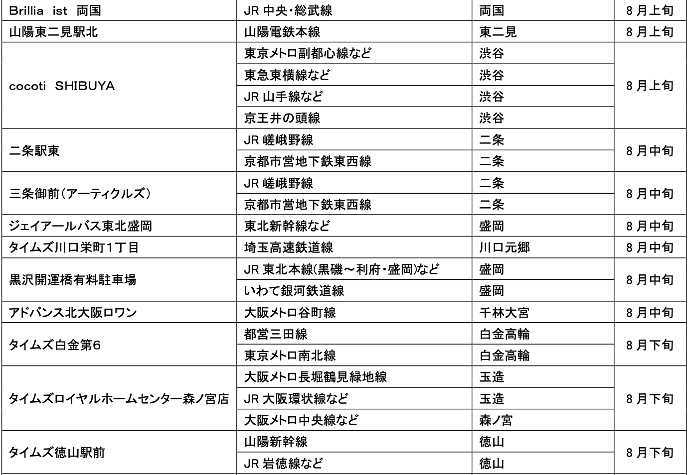 8月にオープンおよびオープン予定の「パーク&ライド」が可能な駐車場は14件、「レール&カーシェア」が可能なステーションは93件です。