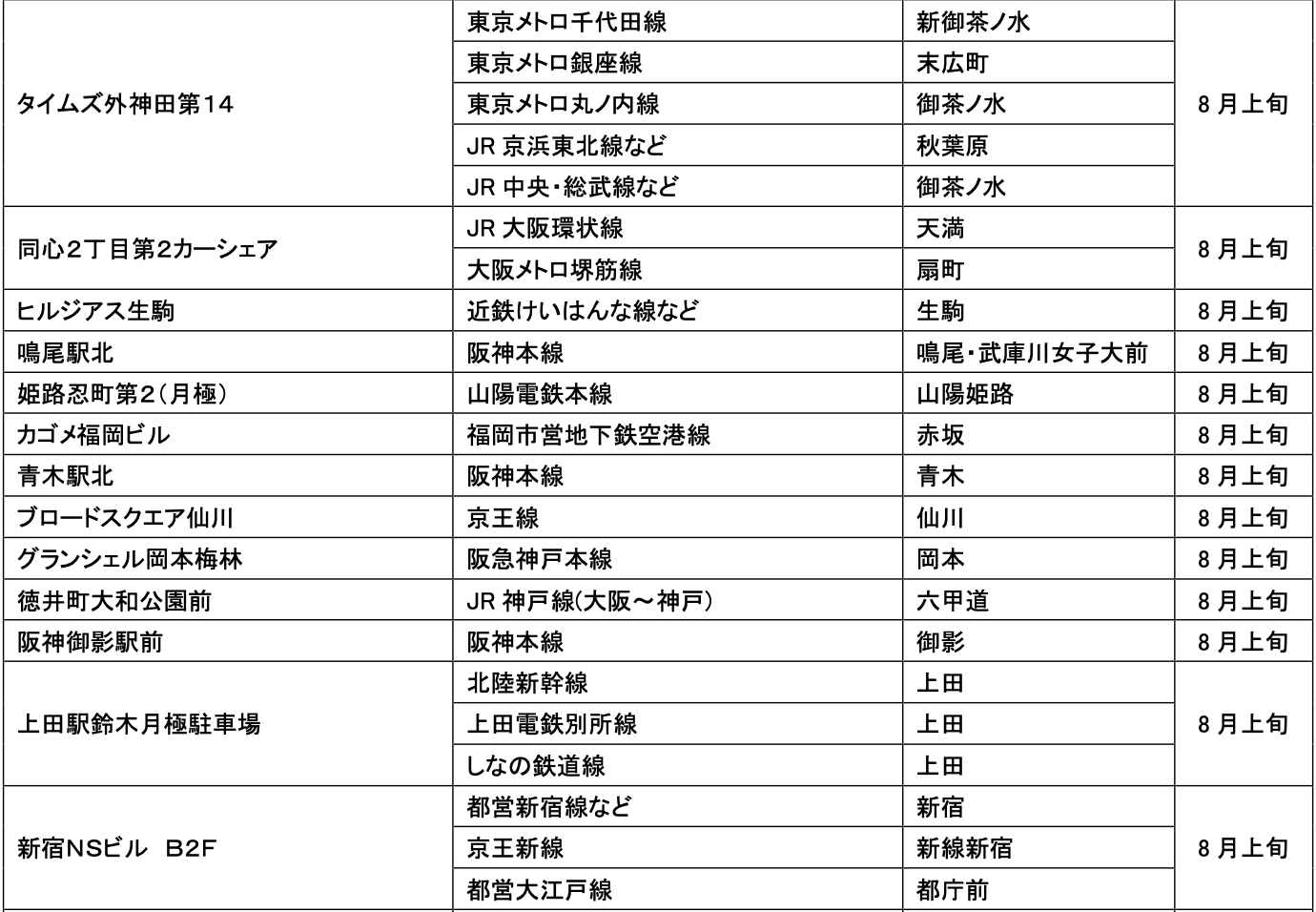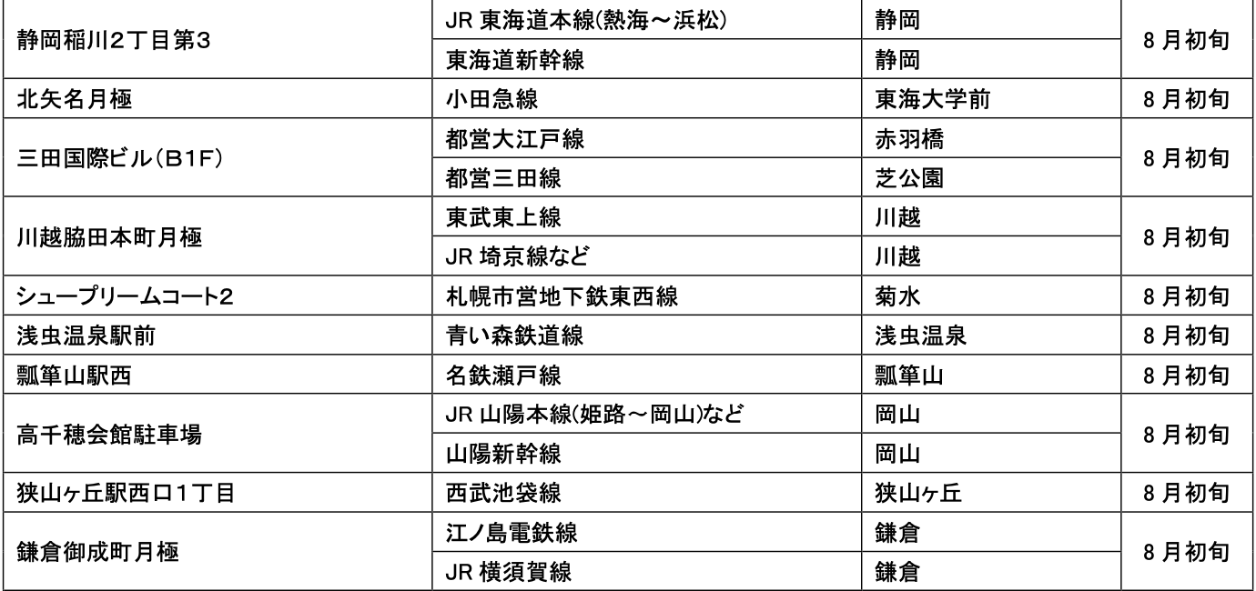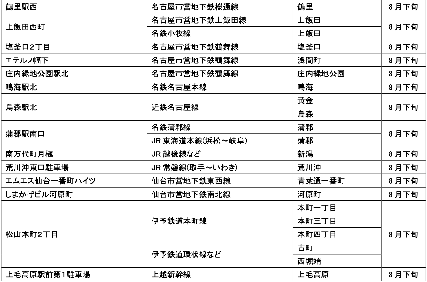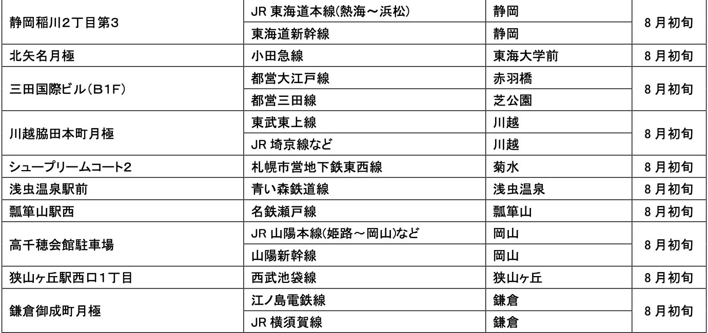8月にオープンおよびオープン予定の「パーク&ライド」が可能な駐車場は14件、「レール&カーシェア」が可能なステーションは93件です。