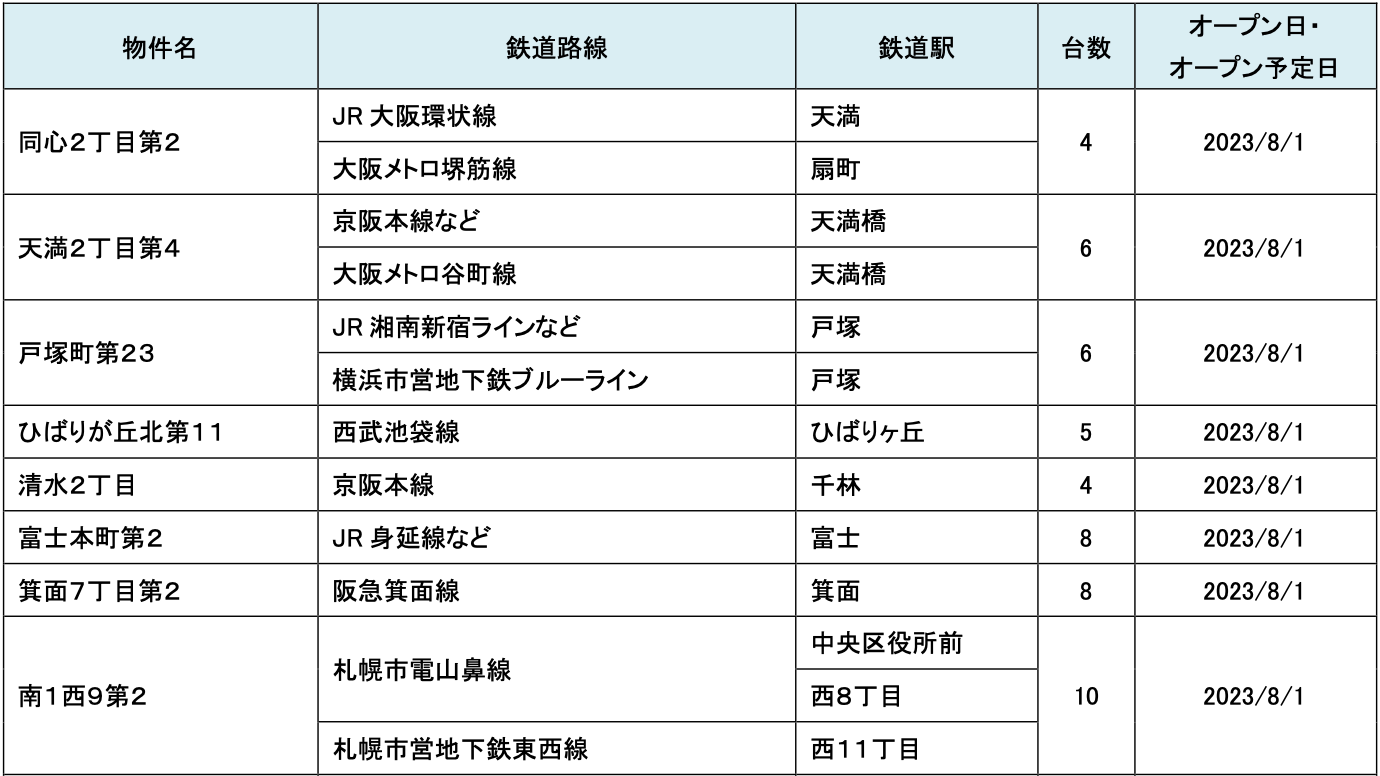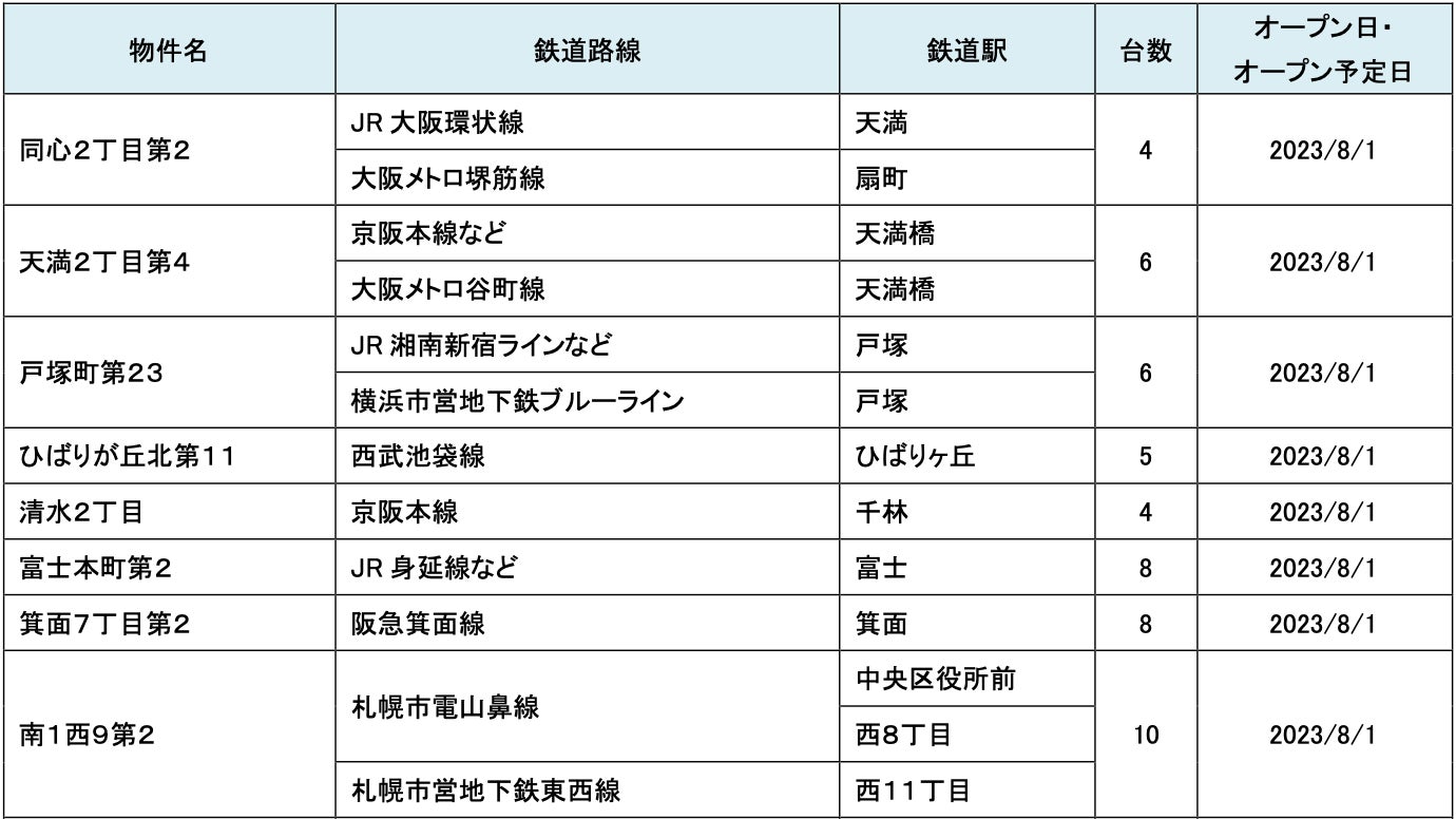 駐車場およびカーシェアステーションのオープン予定については毎月第5営業日にお知らせいたします。