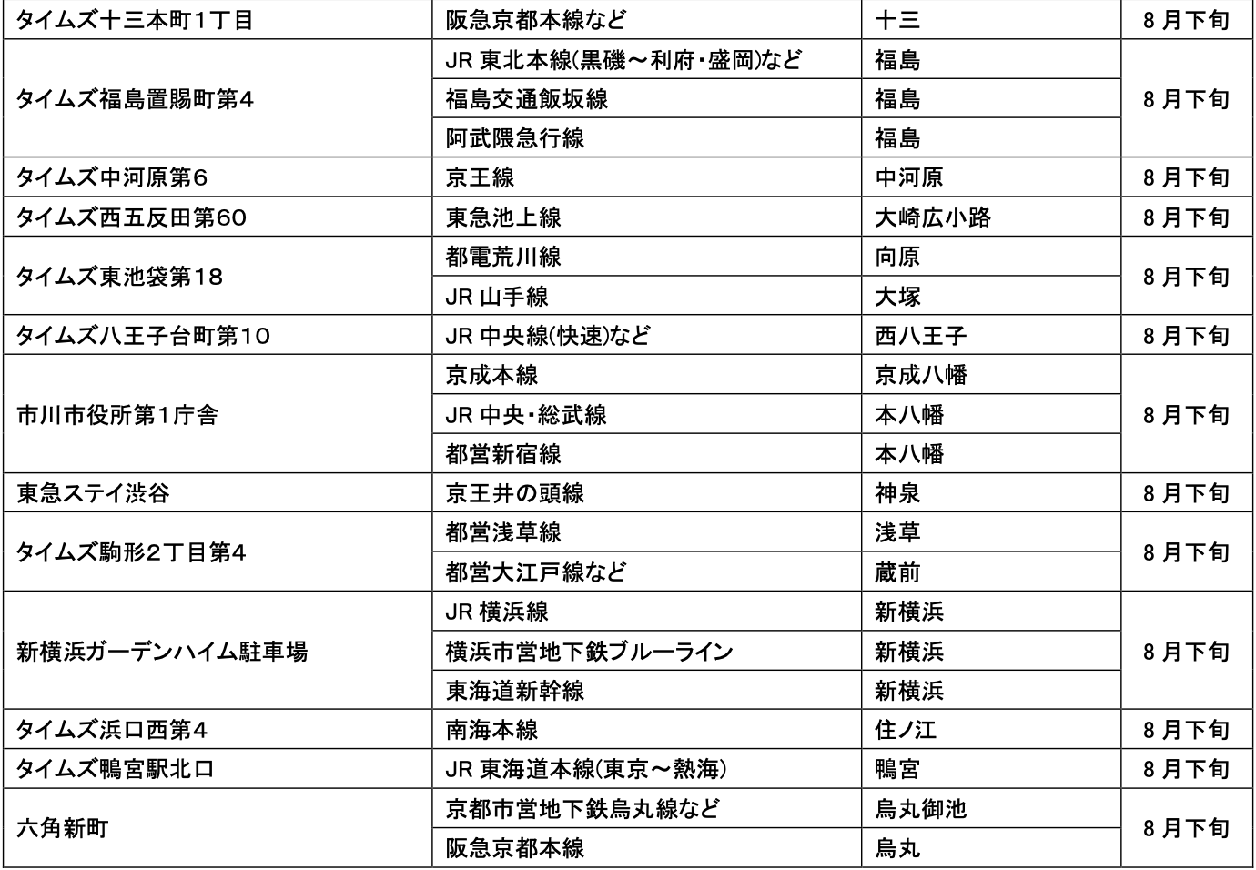 【サステナビリティアクション】パーク&ライドが可能なタイムズパーキングレール&カーシェアが可能なタイムズカーステーション 8月のオープン情報
