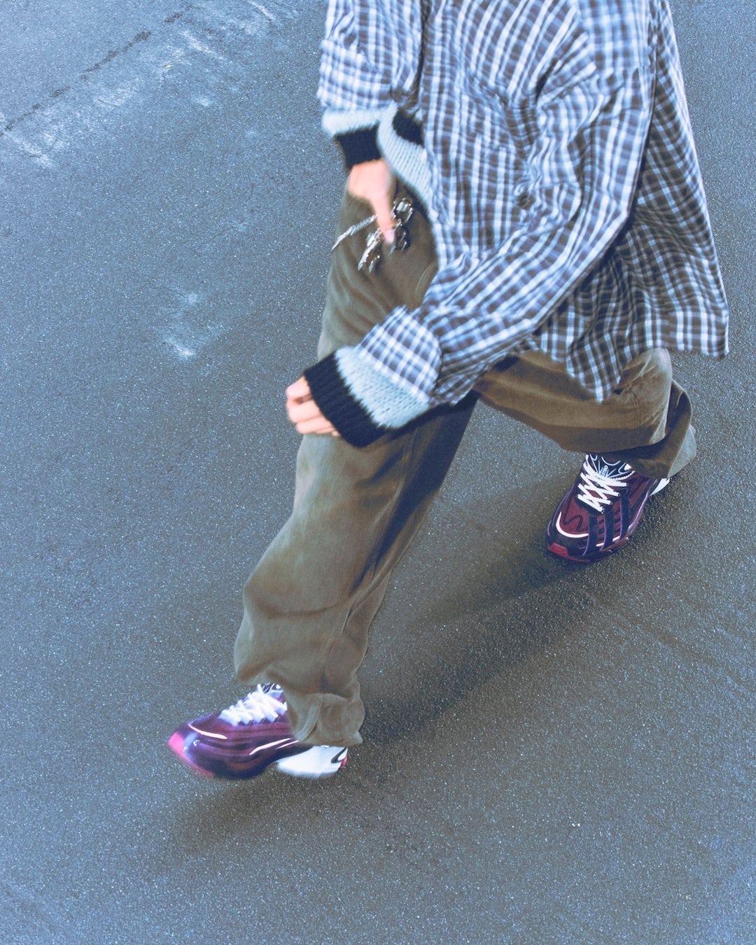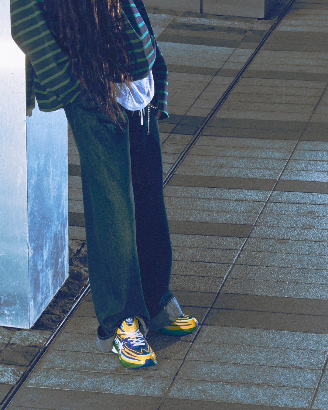 2000年代前後のカラーパレットをイメージしたブラック/ホワイト、イエロー/ブルー/グリーン、パープル/ホワイトの3色展開。シューズボックスはコラボレーションを象徴する特別仕様で、青いメッシュバッグが付属します。