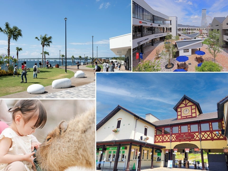 本キャンペーンは、各施設に設置されたキャンペーンチラシを持って、もう一方の施設で提示すると、りんくうプレミアム・アウトレットではクーポンシートを、ハーベストの丘では入園料の割引をプレゼント、両施設をお得に楽しめる特典をご用意しました。