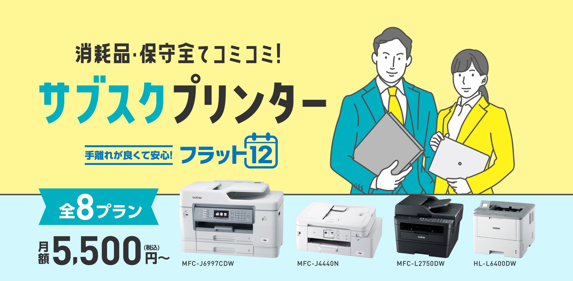 ブラザーでは、家庭用からビジネス用まで幅広いプリンターのラインアップをそろえ、顧客のさまざまな要望に応えている。ブラザーは、搬入・設置からアフターサポートまで付いた法人向け定額プリントサービス「フラット12」を、保守サービスなどを専門に行う株式会社SHINKOを通じて2021年から提供している。このたびブラザーは、「フラット12」の対象モデルに、提供中のカラーインクジェットプリンター2機種に加え、モノクロレーザープリンター2機種を追加する。