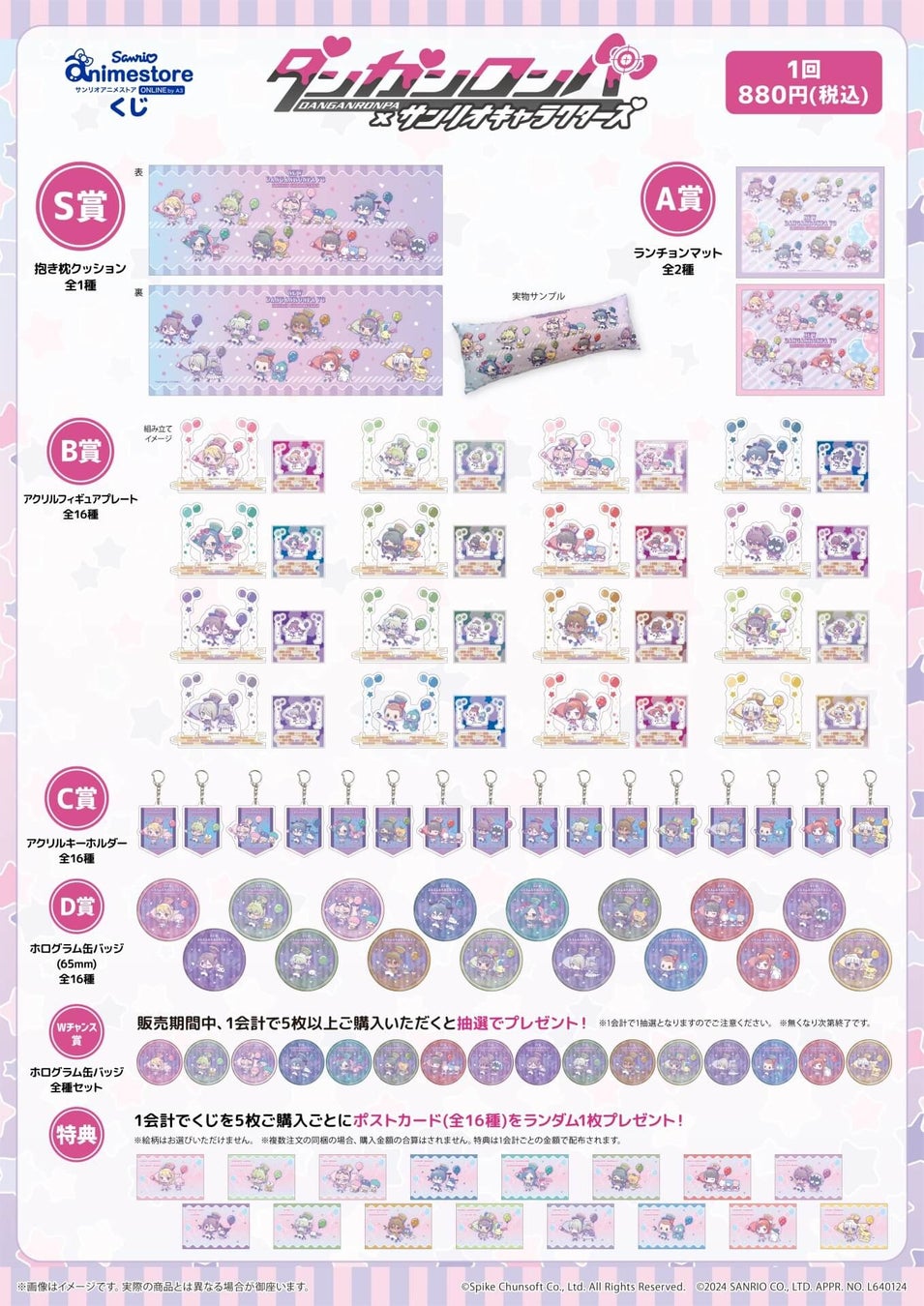 「ダンガンロンパ×サンリオキャラクターズ」のオンラインくじ「サンリオアニメストアくじ」が、2024年2月6日~20日までサンリオアニメストアONLINE(通販)にて販売中です。