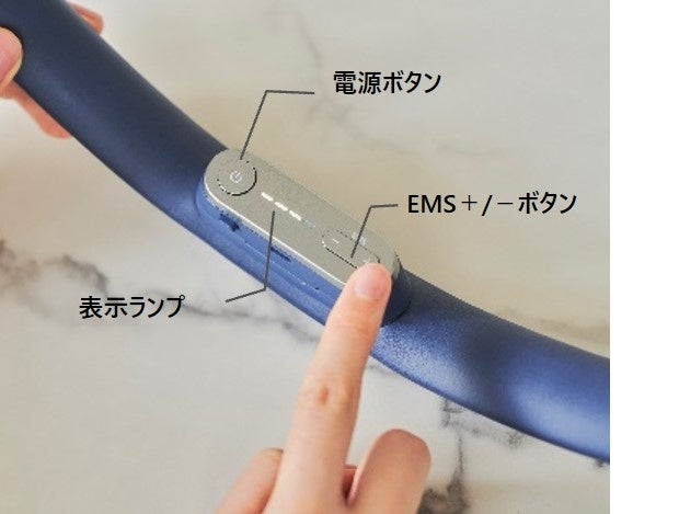 また、筋力トレーニングのサポート使用時はEMSをオンにしてリングの両極のハンドル部のEMSプレートに触れるだけ。2~30HzのランダムなEMS周波数と4段階の電圧強度による電気刺激を与えることで、筋肉の伸縮運動に負荷をかけたトレーニングに。