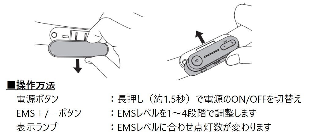 「Electric Muscle Stimulation」の略で、筋肉に微弱な電気刺激を与えて収縮運動を起こし、筋力トレーニングのような効果が期待できる機器やトレーニング方法。EMSは低負荷且つ短時間で速筋を鍛えら、リハビリなどの医療現場だけでなく、トレーニングや美容のアプローチ方法など多岐なシーンに採用されている。