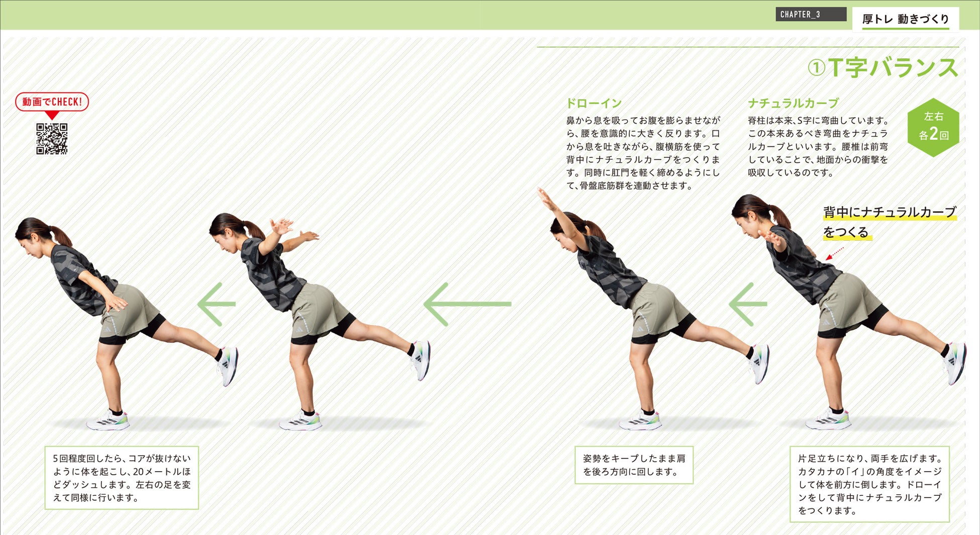 この章では、中野ジェームズ修一トレーナーが考案した、ランニング前に行う厚底シューズ用の動きづくりを紹介します。
