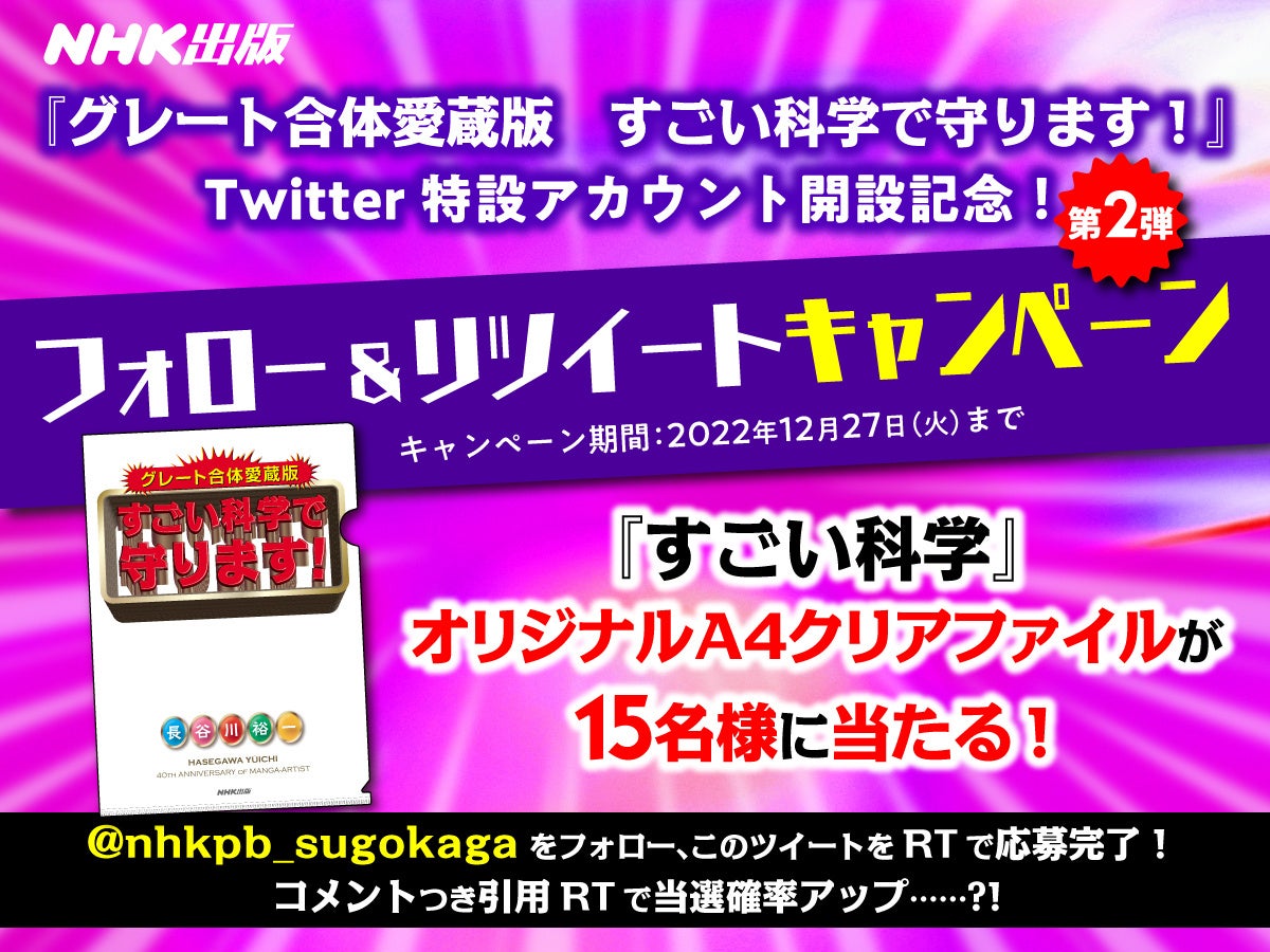 先日のツイッターキャンペーン第1弾に引き続き、第2弾では、フォロー&当該ツイートをリツイートした方の中から抽選で15名に、「『すごい科学』オリジナルA4クリアファイル」をプレゼント!