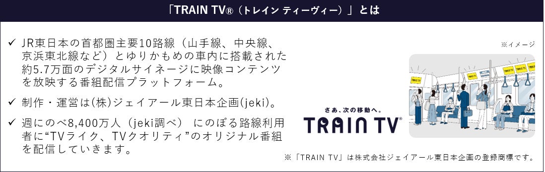 株式会社ジェイアール東日本企画(本社:東京都渋谷区)が運営する首都圏JR主要10路線/ゆりかもめの車内モニターを対象とする番組配信プラットフォーム「TRAIN TV®(トレインティーヴィー)」にて、2025年秋より「うそ探偵トマント」の放映が開始されます!