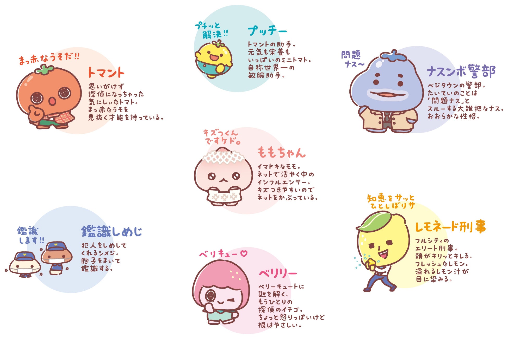 野菜や果物をモチーフとしたユニークなキャラクターたちが登場する、 かわいいのに本格的な、わくわくドキドキなミステリー!