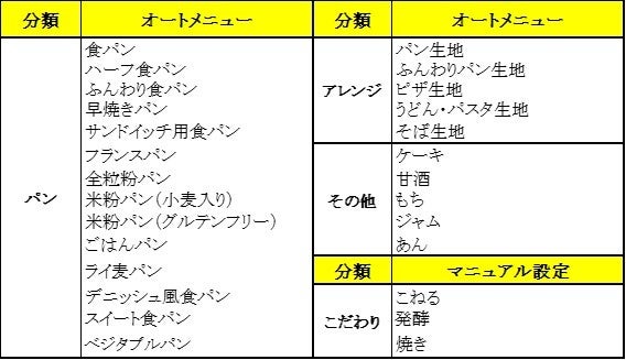 今回発売する「コンパクトホームベーカリー」は、小さなこどもでも食べやすい、パンの耳まで優しい口当たりに仕上げられる「ふんわり食パン」メニューを搭載しています。オートメニュー数は従来品から更に拡充し、歯切れのよい食感に仕上がるサンドイッチ用食パンやデニッシュ風食パン、甘酒やそば生地などの多彩で実用的な全24種類から選択できます。また、こどもがいる家庭を想定し、手ごね動物パンなど全50種類のレシピを掲載したレシピブックを付属しています。