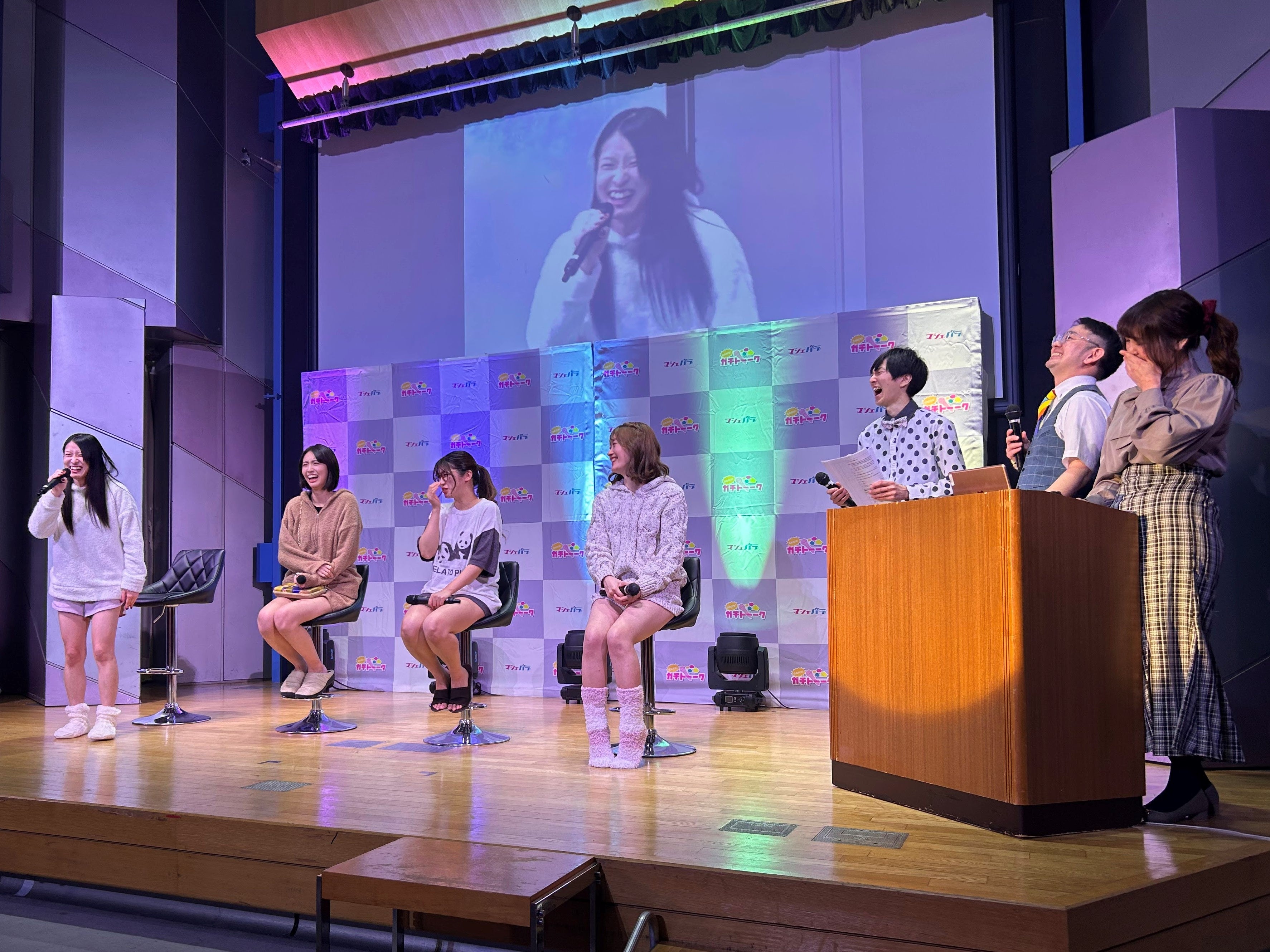 ゲーム『ガチ』メンバーの衣装は、全員『ゲームをするときのリアル部屋着』をコンセプトに各個人用意していただきました。自己紹介では名前と今一番ハマっているゲームを発表しました。