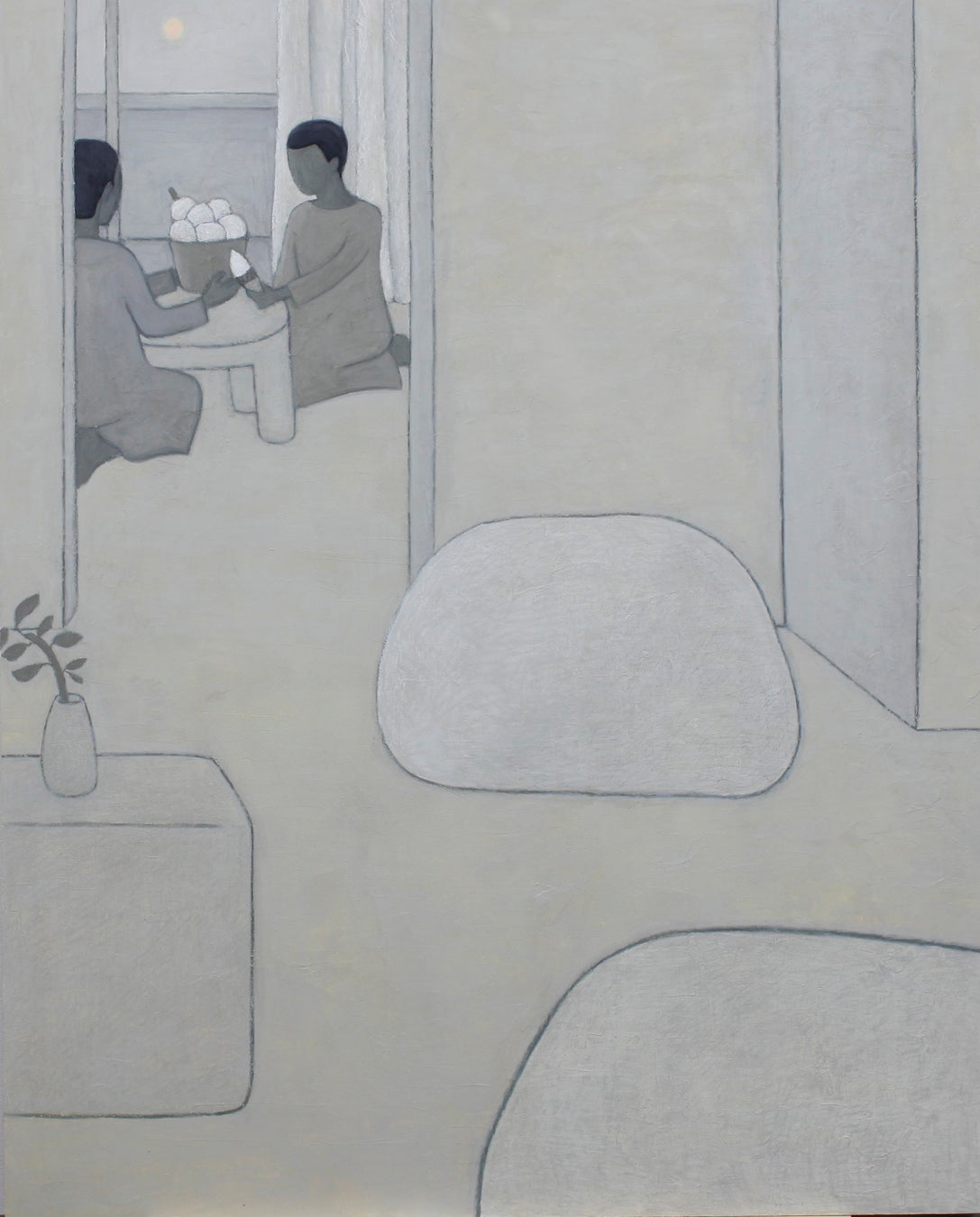 本作は三部作のひとつで、他の二作には写っていたモチーフが消されています。写真を撮ることでその存在を証明し、PCで簡単に不在へと戻すことができます。この制作プロセス自体が、日々脱ぎ散らかされた衣類を誰にも気づかれず片付ける営みと重なり、家事にまつわる状況に対し表現として昇華させました。この一作だけが選ばれたことに、日常の生々しさが現代芸術で、どのように扱われているのかという価値観を映し出しているように感じます。