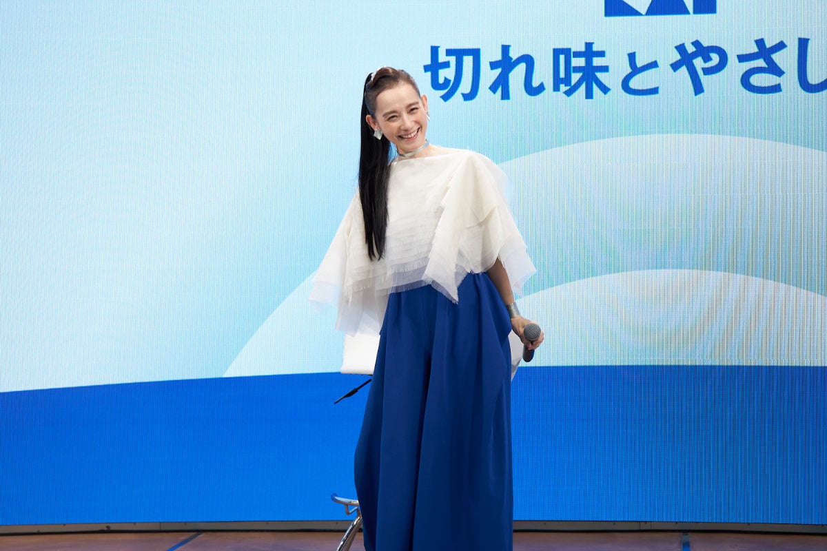 まずは、AUGERブランドアンバサダーである俳優の板垣李光人さんが深い青と白のストライプのスーツ姿で登場。続いて篠原ともえさんが、この日のために特別にご自身でデザイン、制作した衣装で登場しました。お2人が揃ったところでトークセッションがスタート。今回いい刃の日の登壇が3回目になる板垣さんからは、「3回目の登壇ということで、いい刃の日が定着してきました。1回目に参加してきてから、いい刃の日はカレンダーに書いていて、文化の日のように浸透しています。」とコメントいただきました。