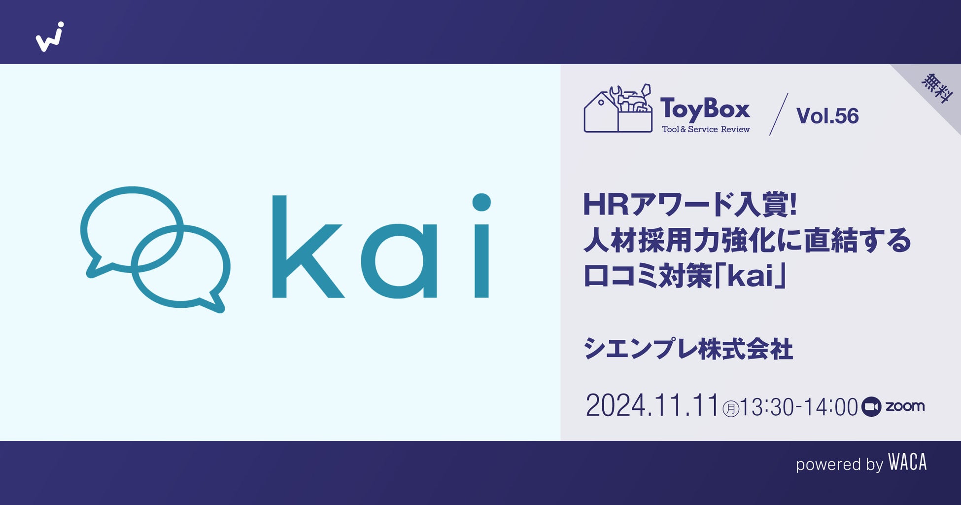2024年11月11日(月)13:30〜14:00【ToyBox】Vol.56【無料】HRアワード入賞!人材採用力強化に直結する口コミ対策「kai」