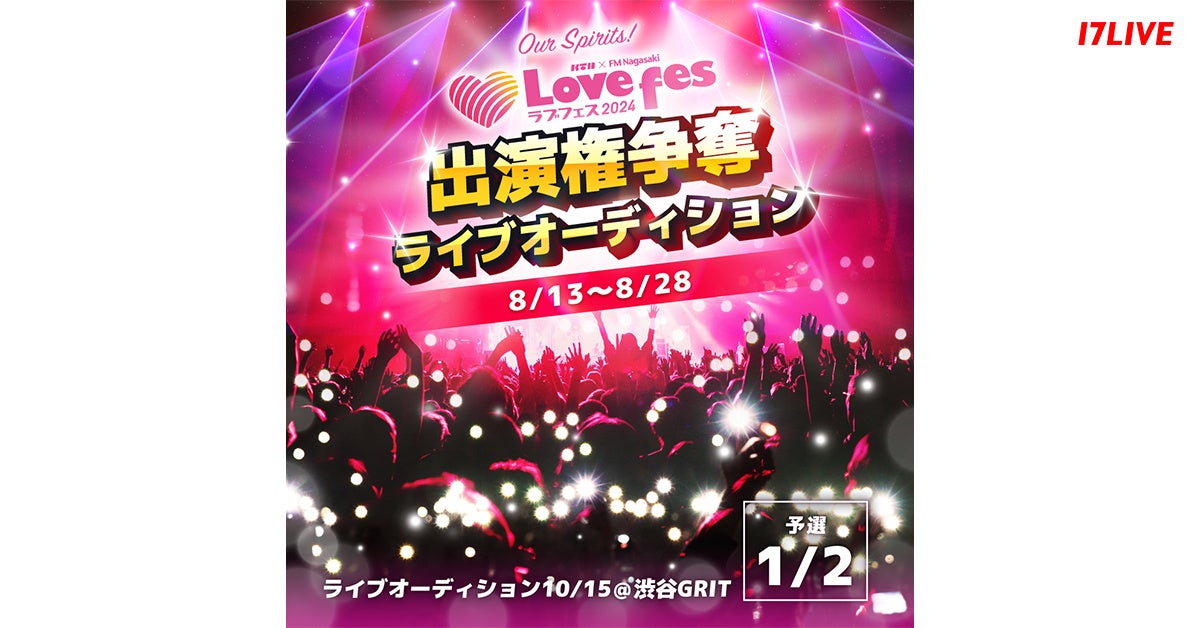 今年で12回目を迎えた『Lovefes』は、「長崎を魅力あふれる街にしたい!多くのみなさんに楽しんでほしい!」という思いのもと、地元・長崎のKTNテレビ長崎とFM長崎がタッグを組み、実施しているイベントです。長崎水辺の森公園一帯で実施される本イベントは、音楽ライブやグルメブース、子どもたちが楽しめるイベントの数々や打ち上げ花火などを予定しており、子どもから大人まで楽しめる内容となっています。特に音楽ライブは、毎年著名なアーティストが出演する人気コンテンツで、「17LIVE」では、今回のコラボレーションを通じて、音楽の分野で夢を追う多くのイチナナライバーに活躍の場を提供したいという思いから、実施を決定しました。