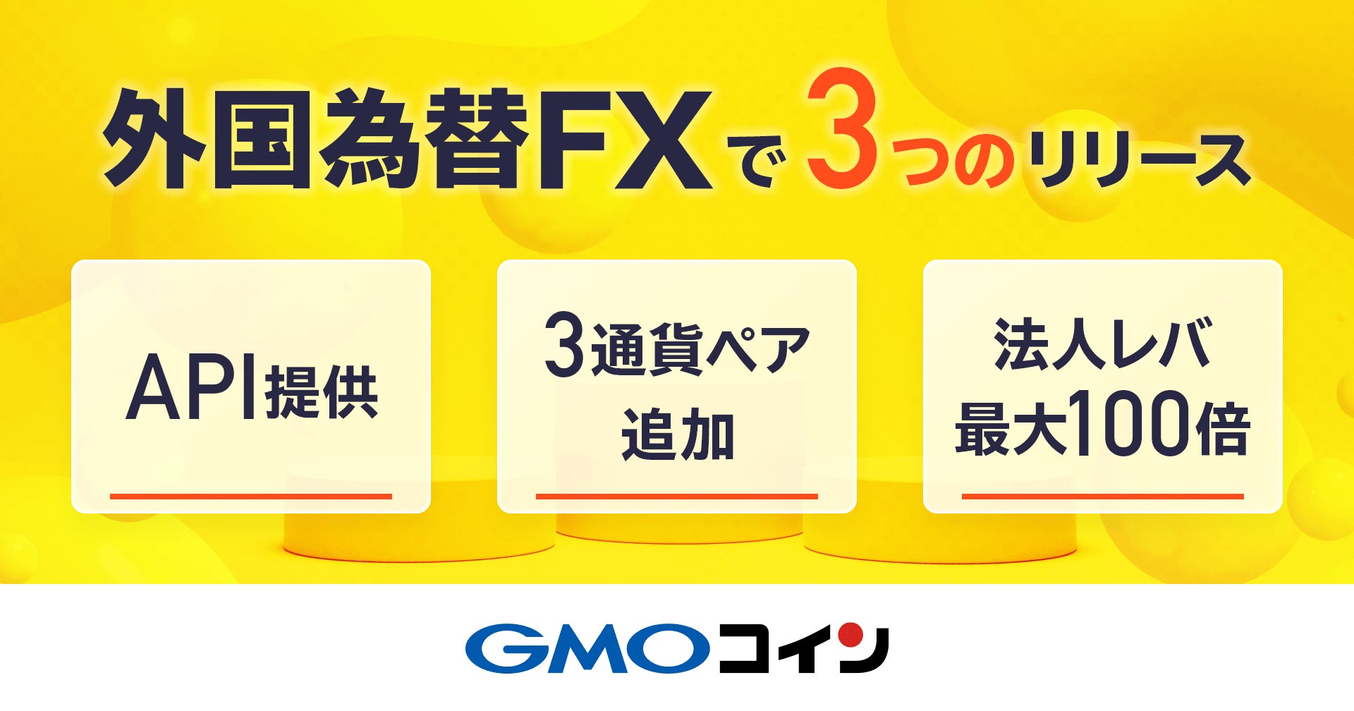 暗号資産取引のGMOコイン:「API提供」「3通貨ペア追加」「法人レバ最大100倍」など、「外国為替FX」サービスを拡充予定