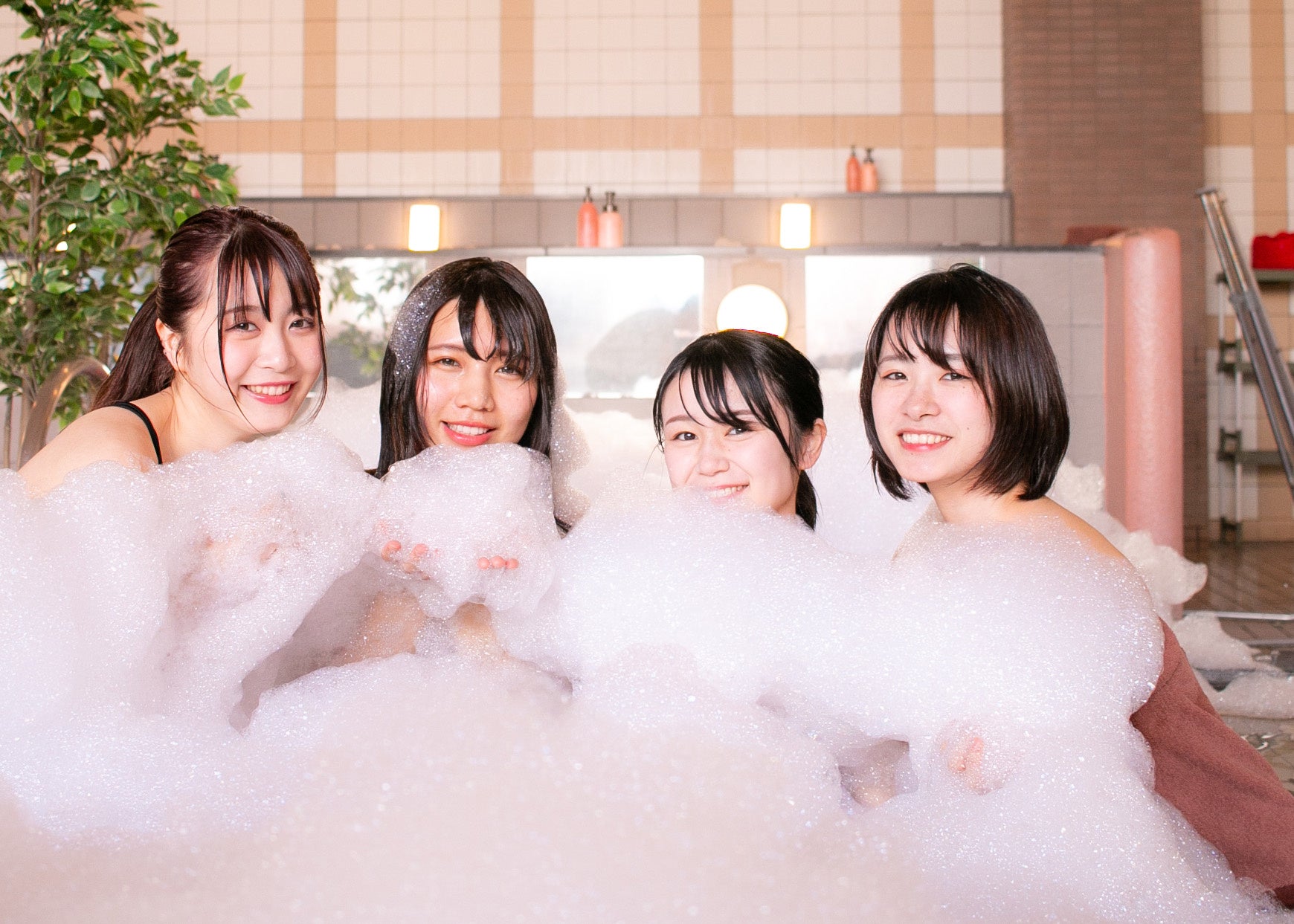 <浴室でだらだら>泡にまみれる「泡パーティー」後は、そのままおふろで山形のフルーツアイスクリーム「MOGY」を味わう