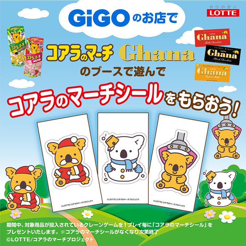 GiGOのお店でコアラのマーチシールがもらえる!「GiGO×ロッテ ウインターキャンペーン」開催のお知らせ