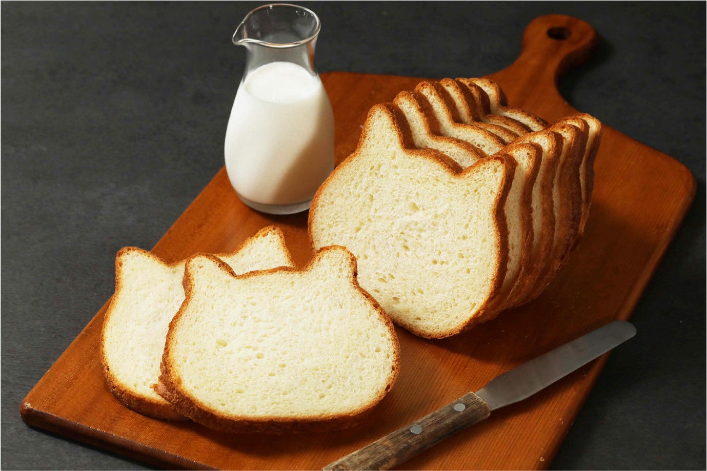見た目だけではなく、おいしさを追求して、水分はミルク100%。小麦も国産にこだわりました。ひと口食べるとほんのり甘く、ミルクのうまみがじんわり広がるにゃんともおいしい本格派食パンです。