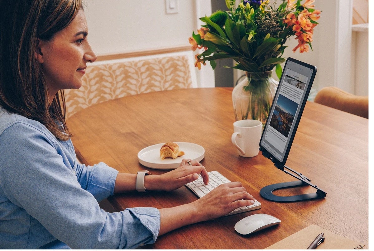 ポータブルiPadホルダーがあれば、自宅、オフィス、飛行機内など、どこにいても生産性と快適さを体験できます。