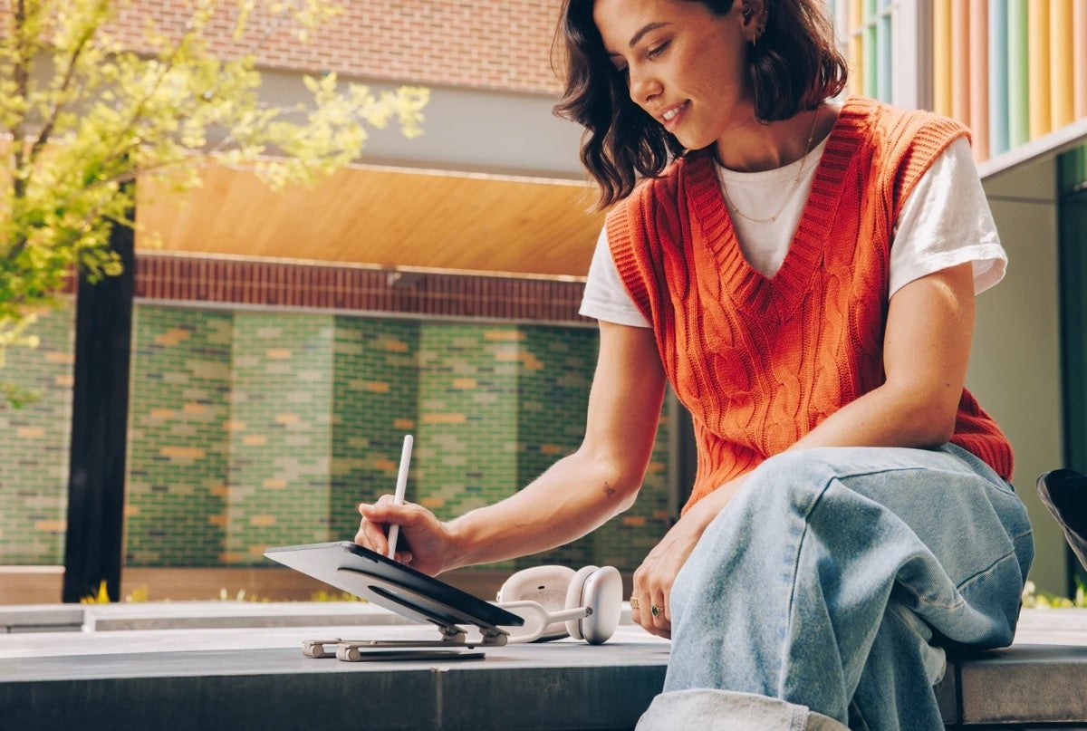 Twelve South Curve Miniは、マルチアングルヒンジにより縦向きと横向きを簡単に切り替えることができ、ビデオ通話からタイピング、スケッチまで、多様なニーズに対応します。