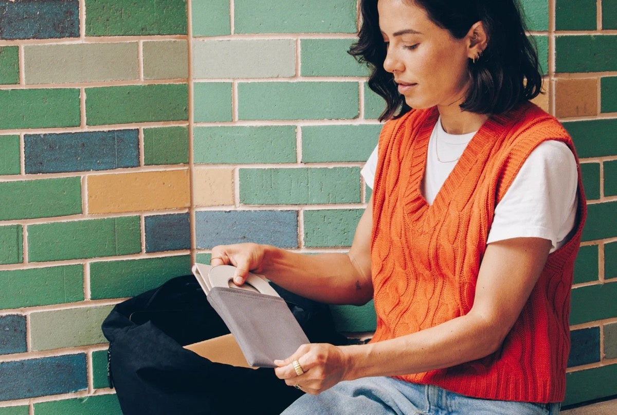 外出先での使用に最適なTwelve South Curve Miniは、フラットに折りたたんで付属のトラベルポーチに収納できます。