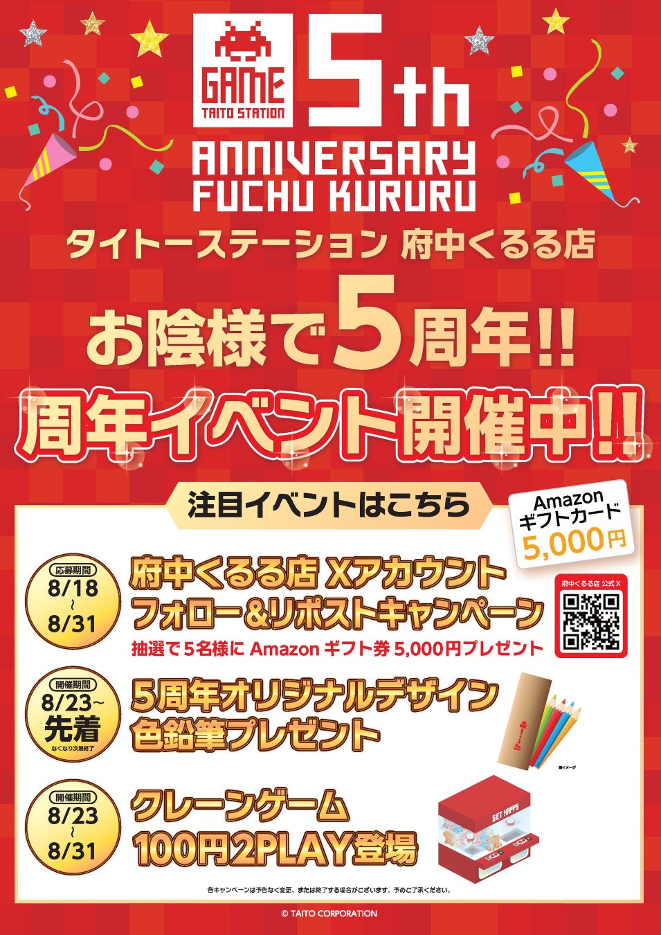 ■ タイトーステーション 府中くるる店 5周年記念キャンペーンについて