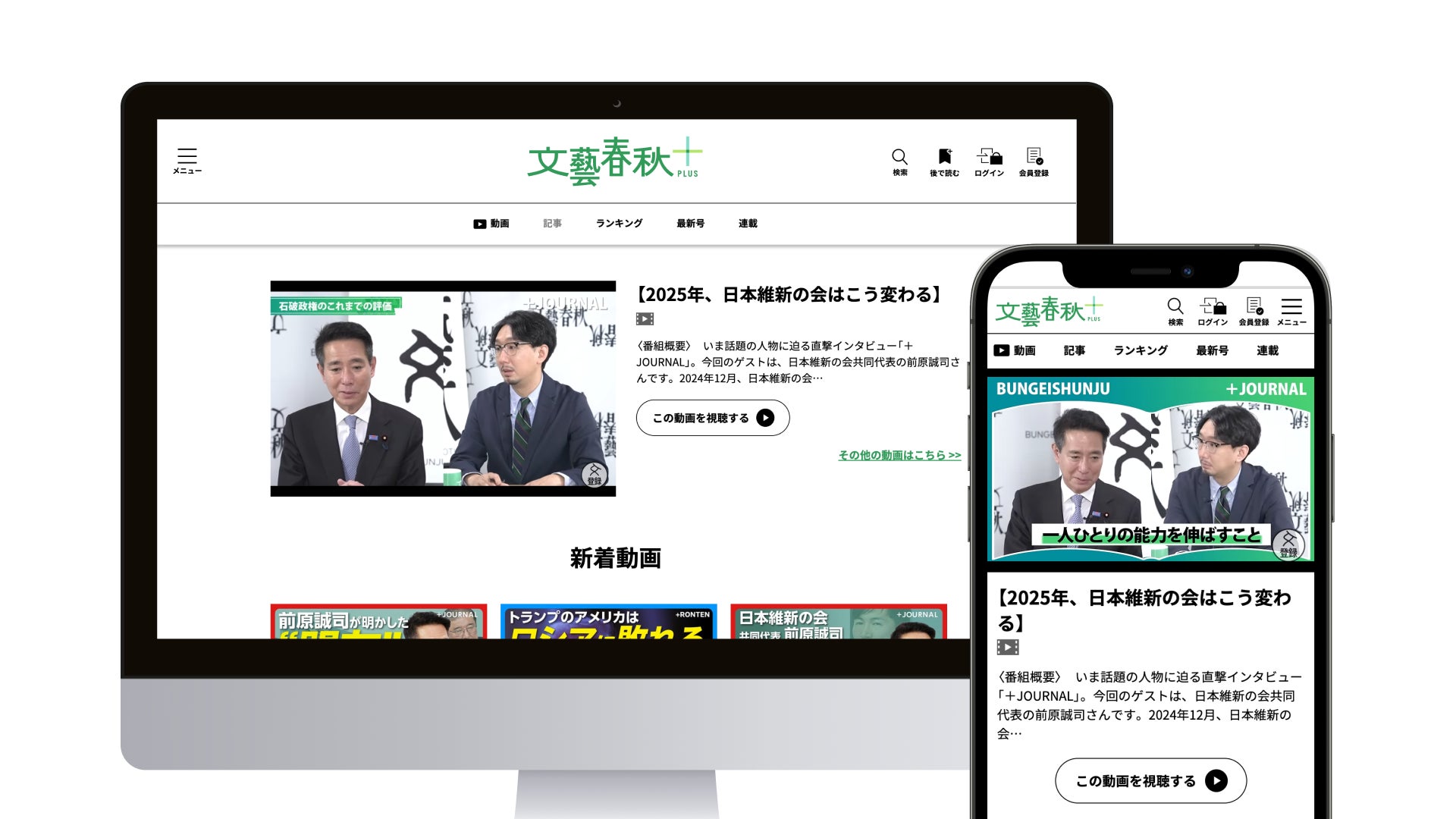 そして2月3日、動画メディア『文藝春秋PLUS』は『文藝春秋電子版』と合体し、サイト名を『文藝春秋PLUS』に統一。ロゴやサイトデザインをリニューアルしました。