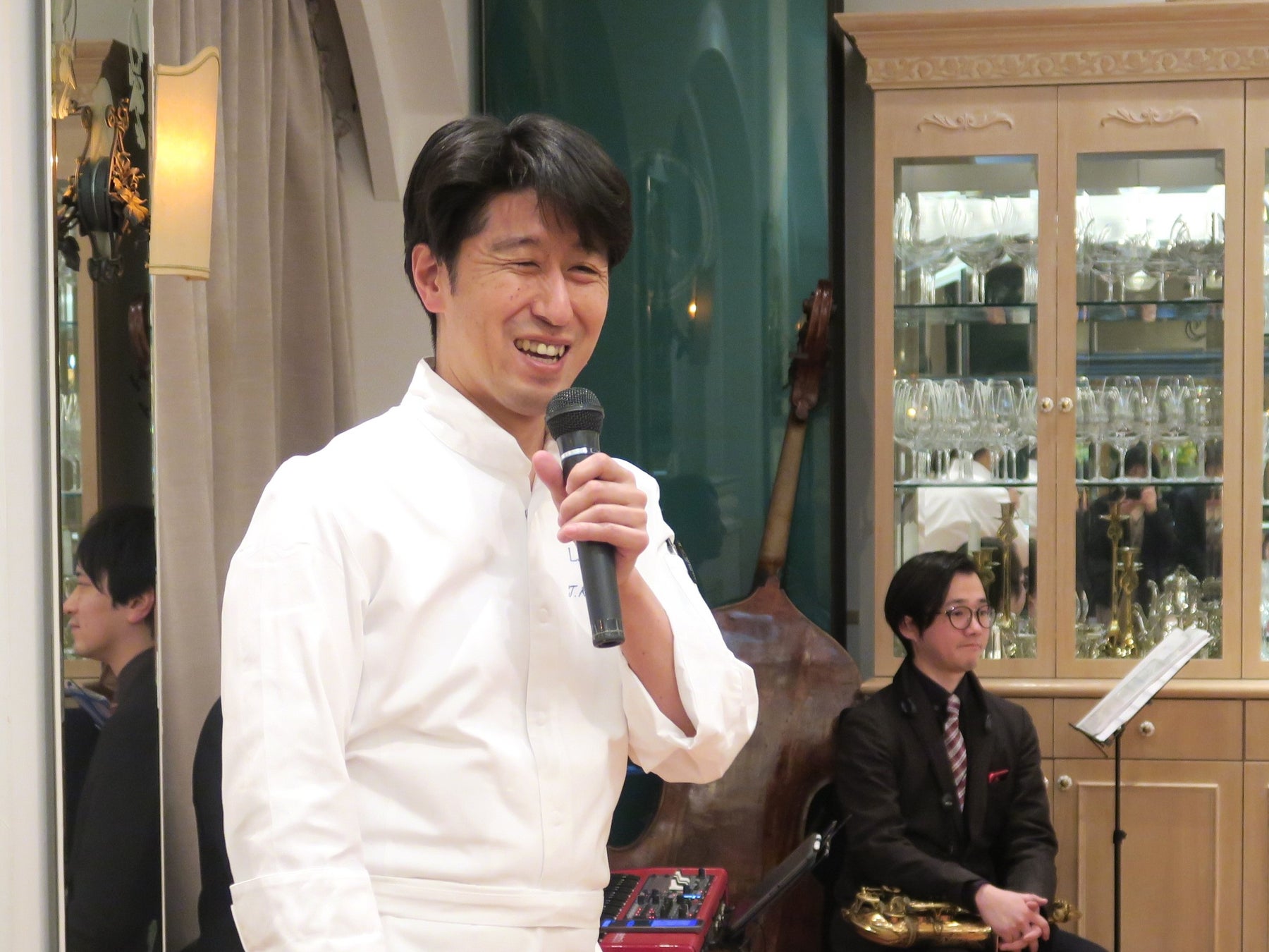 続いてラ・ロシェル南青山の料理長 川島 孝シェフからは、イベントのために考案された特別なフルコースについてご紹介をいただきました。