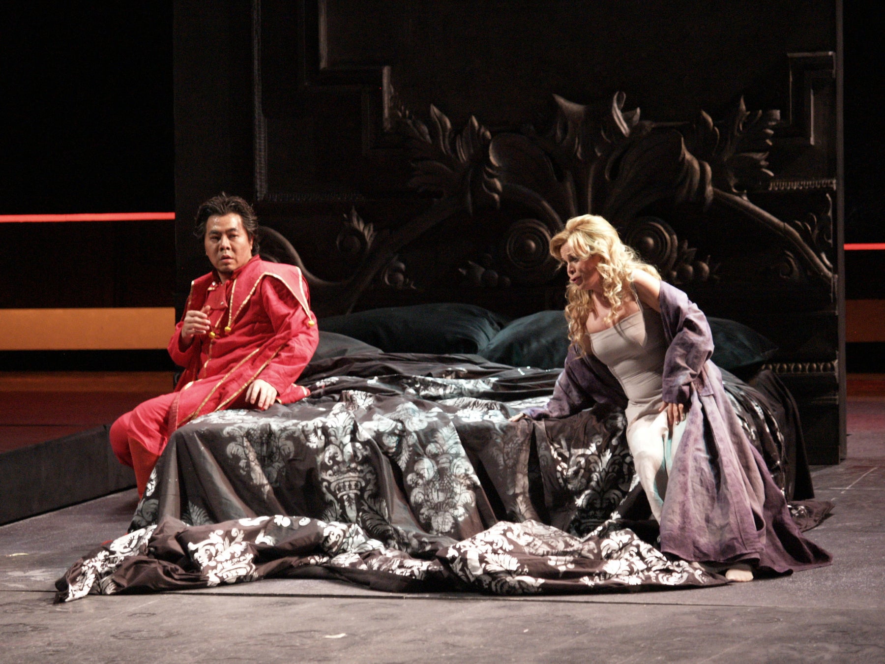 エミリオ・サージ演出のプロダクションはビルバオ・オペラとリスボン・サン・カルロス歌劇場の共同制作で初演後、バレンシアのソフィア王妃芸術宮殿でも上演され、現代的な視点で作品の演劇性と登場人物の孤独とにクローズアップし、大成功を収めたものです。