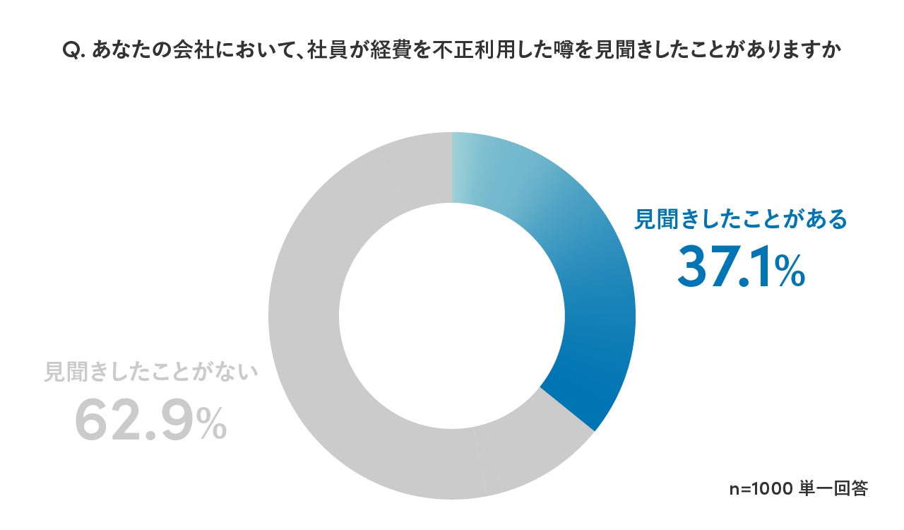 自社において、社員が経費を不正利用した噂を見聞きしたことがあるか聞いたところ、37.1%が「見聞きしたことがある」と回答しました。