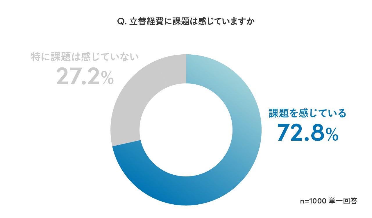 20〜50代の会社員1000名に対し、立替経費に課題を感じているか聞いたところ、72.8%が「課題を感じている」と回答しました。