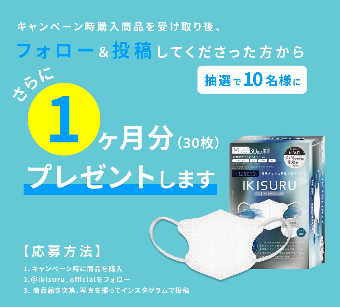 さらに、Instagramに投稿&フォローでIKISURU1か月分が抽選10名様に当たる企画も同時開催しております。