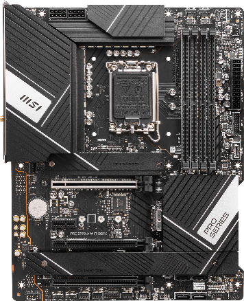 MSIが展開する第13世代Intel® Core™ プロセッサー対応のマザーボードは、CPUの性能を最大限発揮するために、ATXサイズ最廉価グレードモデルでも14+1+1フェーズ 55A Dr.MOS対応の堅牢な電源回路と大型ヒートシンクを搭載しています。またPCIe 5.0やDDR5に対応するために、SMT(表面実装)プロセスを採用したほか、サーバーグレードの高品質PCBを使用し、高い安定性を確保しました。さらに、お客様のニーズに応えられるよう、DDR5モデルとDDR4モデルの両バージョンを取り揃えています。