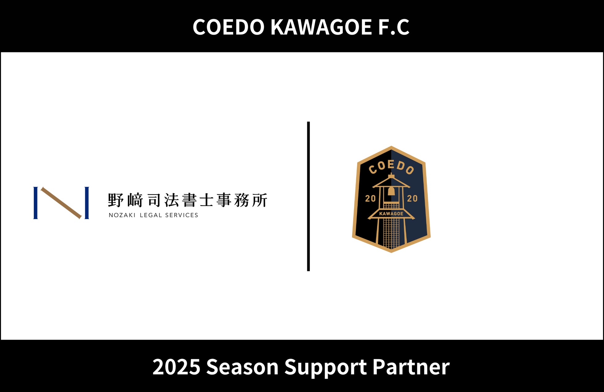 COEDO KAWAGOE F.Cを運営するCOEDO KAWAGOE F.C株式会社(埼玉県川越市、代表取締役 有田和生)は、相続手続のほか、遺言作成や法律相談、会社設立登記など、様々な法律手続に対応する野﨑司法書士事務所(埼玉県川越市、野﨑洋平)と、2025シーズンのサポートパートナー契約を締結したことを発表いたします。