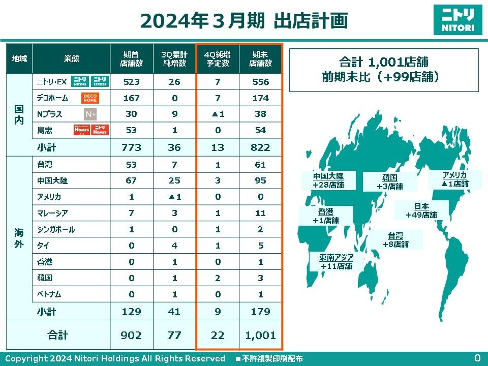 【ご参考】2024年3月期 ニトリグループ出店計画