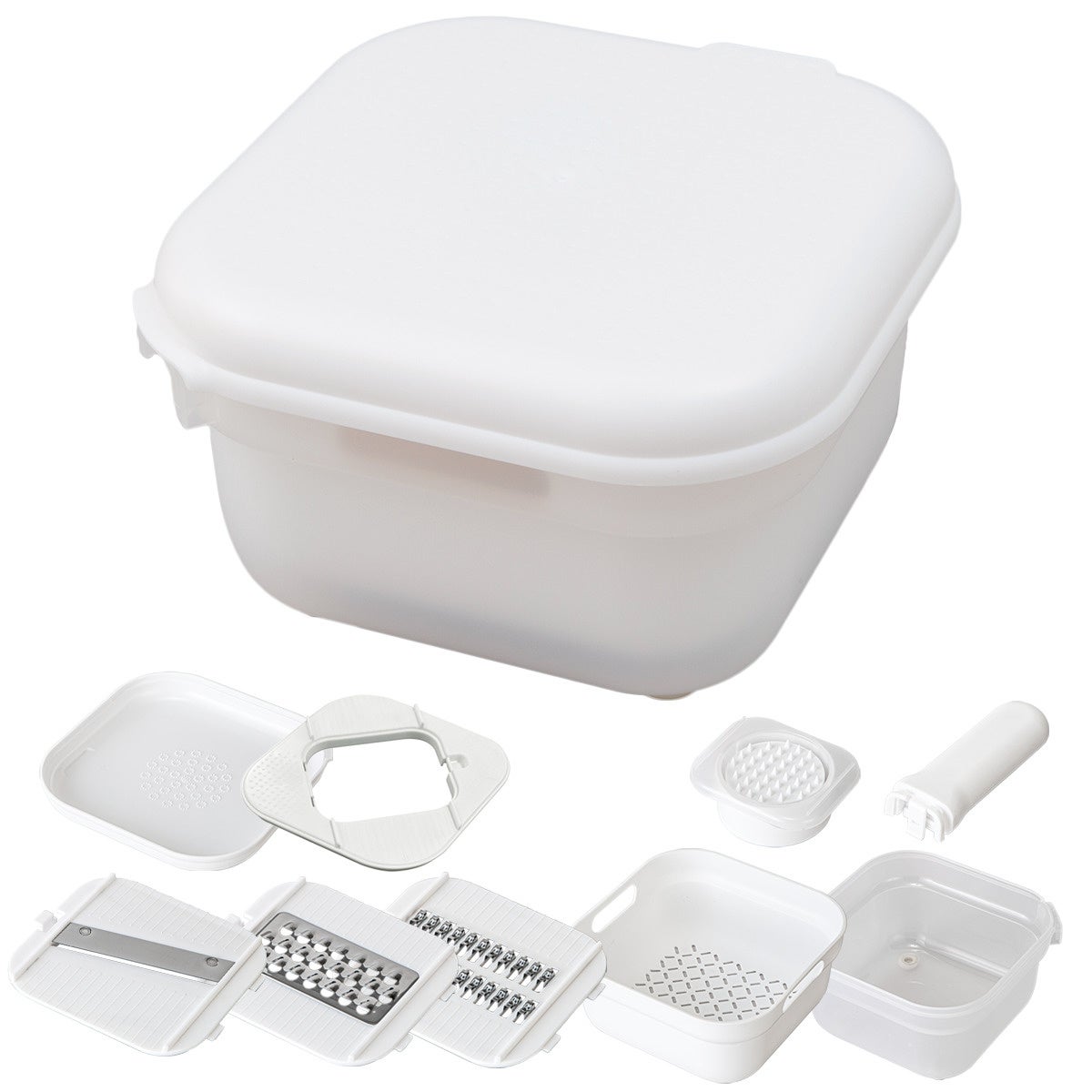 【商品名】1台7役でコンパクトに収納できるスライサーボウルセット