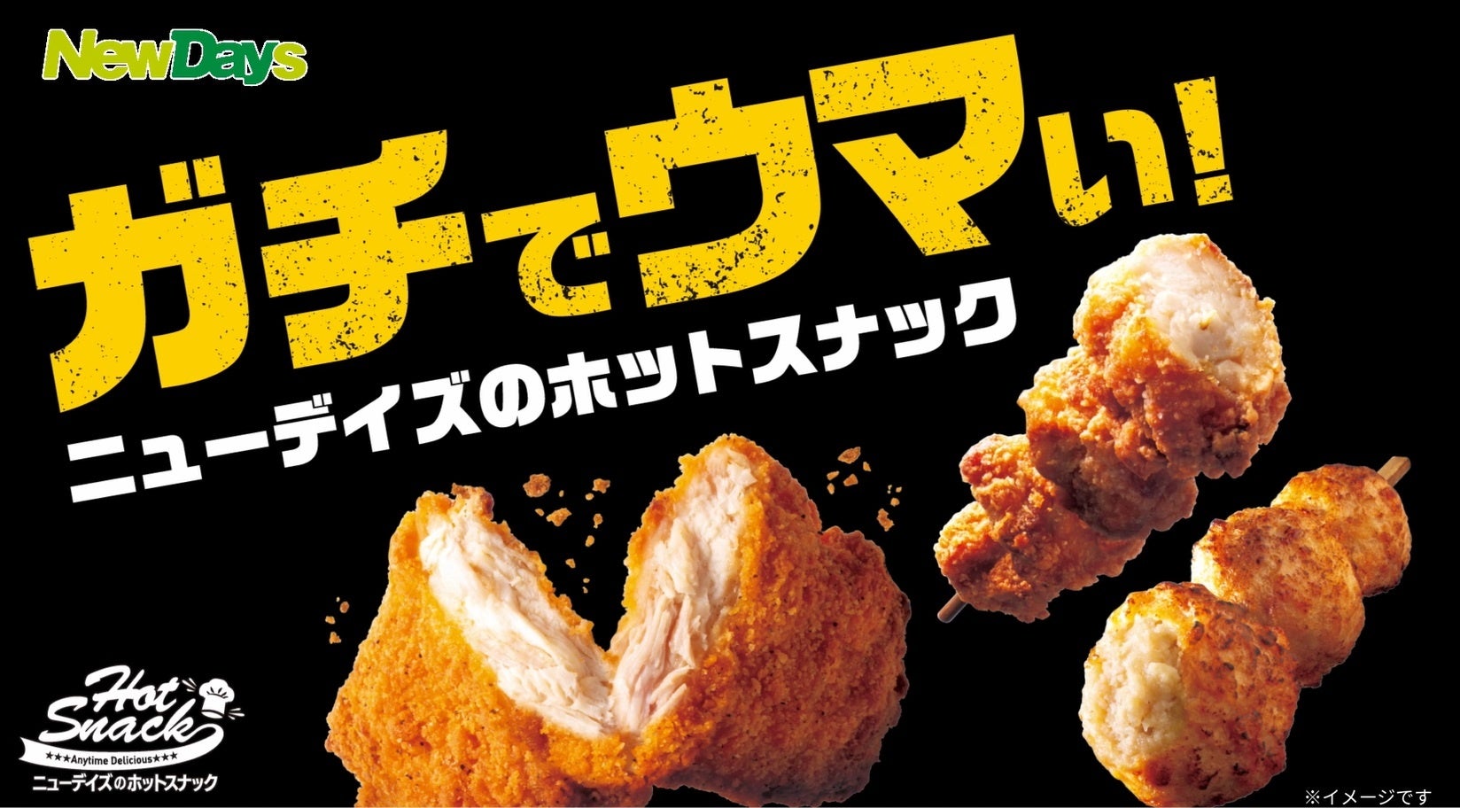 6月25日(火)からホットスナックのCM動画をNewDaysVISIONと店頭サイネージで放映します。NewDaysオリジナルの「唐揚げ棒」「軟骨入り鶏つくね串」「ニューチキ」の魅力や美味しさが伝わる動画になっております。