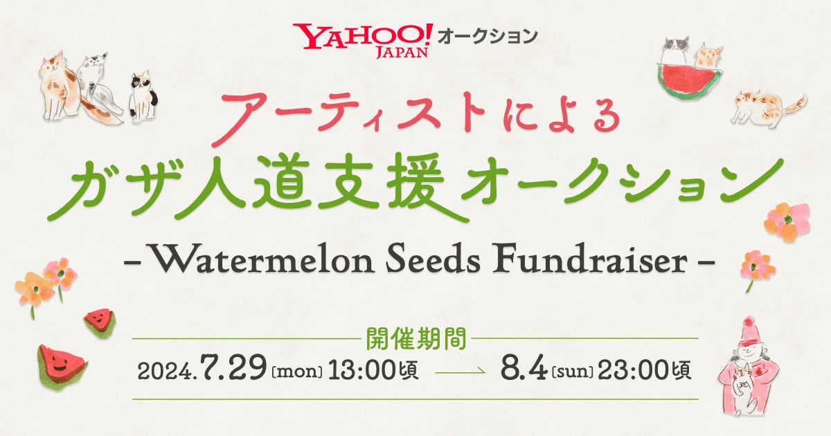 坂本美雨さんが発起人の「Watermelon Seeds Fundraiser」は、LINEヤフー株式会社(以下、LINEヤフー)が運営する日本最大級のインターネットオークションサービス「Yahoo!オークション」にて、ガザ人道支援を目的としたチャリティーオークション(以下、本オークション)を2024年7月29日(月)から8月4日(日)まで開催します。ミュージシャンやクリエイター、画家など、賛同するアーティスト28名の作品や私物が出品される予定です。