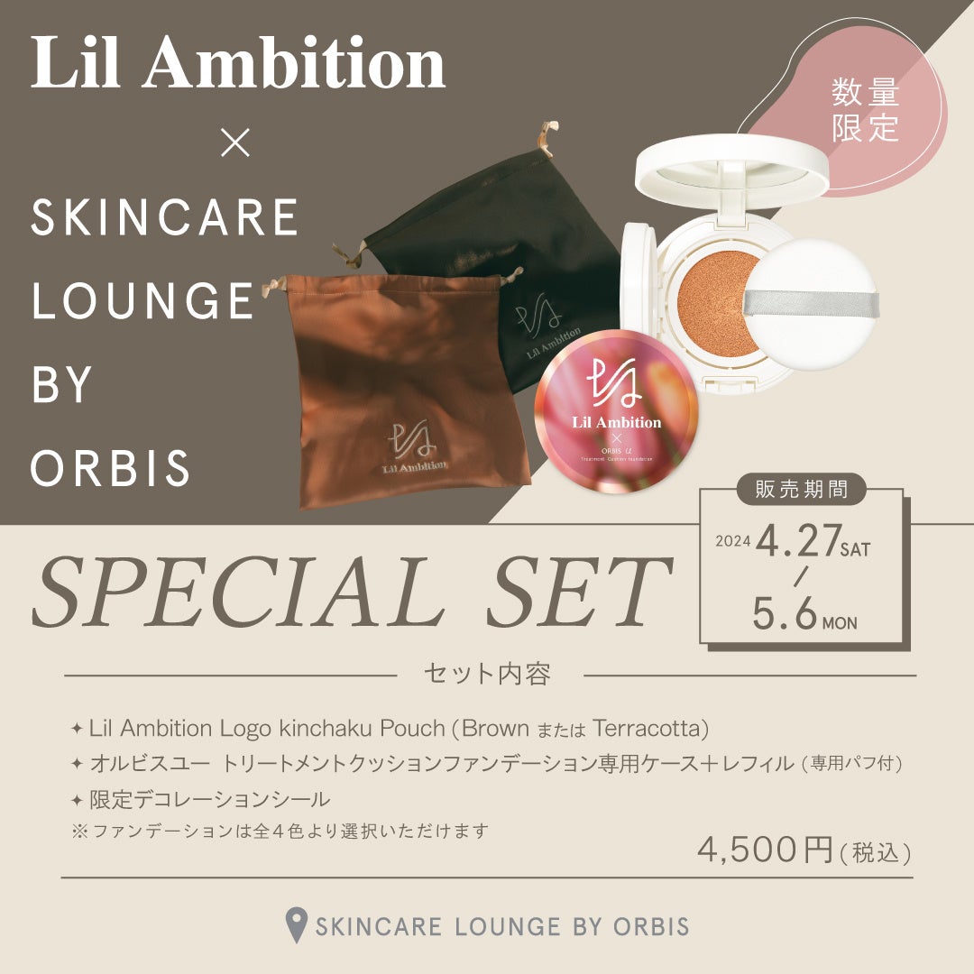 『Lil Ambition』の“自分の手で自分の幸せを掴む”ための一歩を後押しできるブランドでありたいという想いと、『SKINCARE LOUNGE BY ORBIS』が大切にしている“あなたらしい美しさ、生き方を見つけるサポートをしたい”という想いから生まれた限定セットになります。