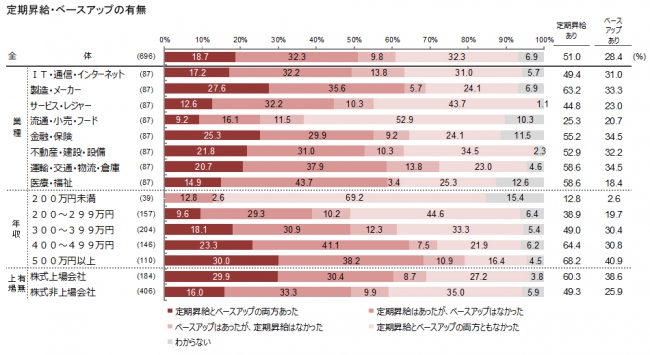 *2:「定期昇給とベアの両方あった(18.7%)」と「ベアはあったが、定期昇給はなかった(9.8%)」を足しあげて算出