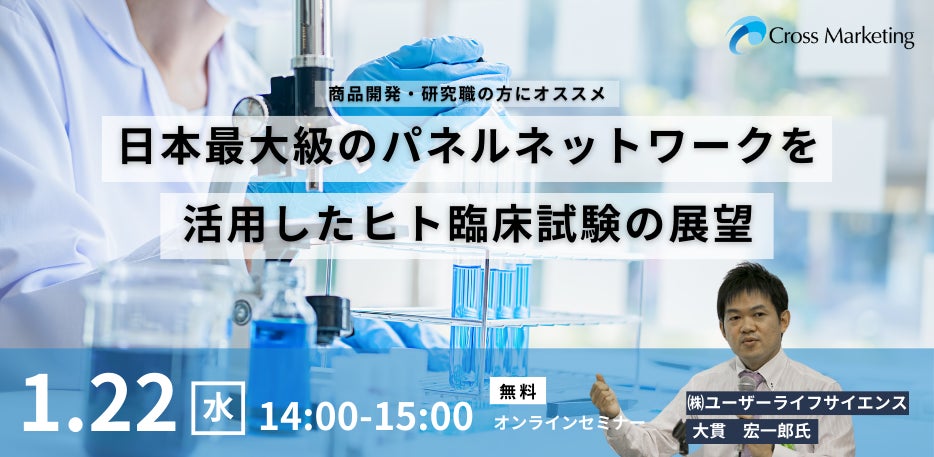 名称:【商品開発・研究職の方にオススメ】日本最大級のパネルネットワークを活用したヒト臨床試験の展望