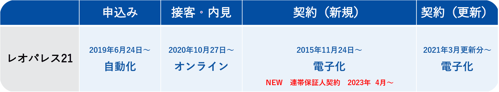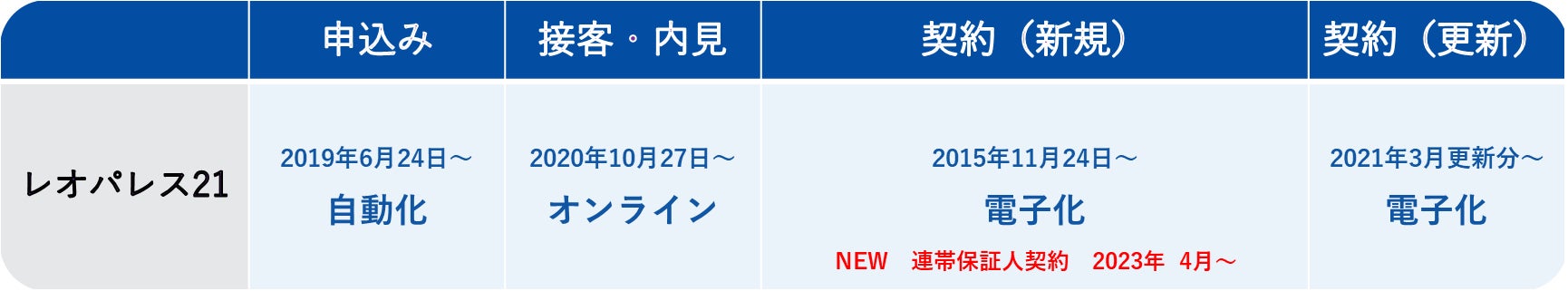 株式会社レオパレス21(東京都中野区 代表取締役社長:宮尾 文也、以下「当社」)は、顧客利便性向上およびDX推進の一環として、個人向け電子契約サービスの範囲をさらに拡張し、これまで電子契約で手続きを進めることができなかった連帯保証人契約が、4月25日より電子契約で手続きが可能となります。今回、連帯保証人契約も電子での手続きが可能になったことで、個人入居契約の全てが電子化対応となりました。
