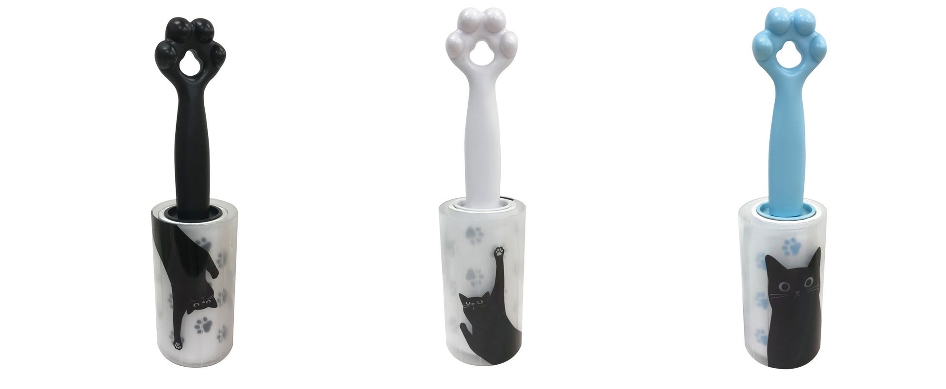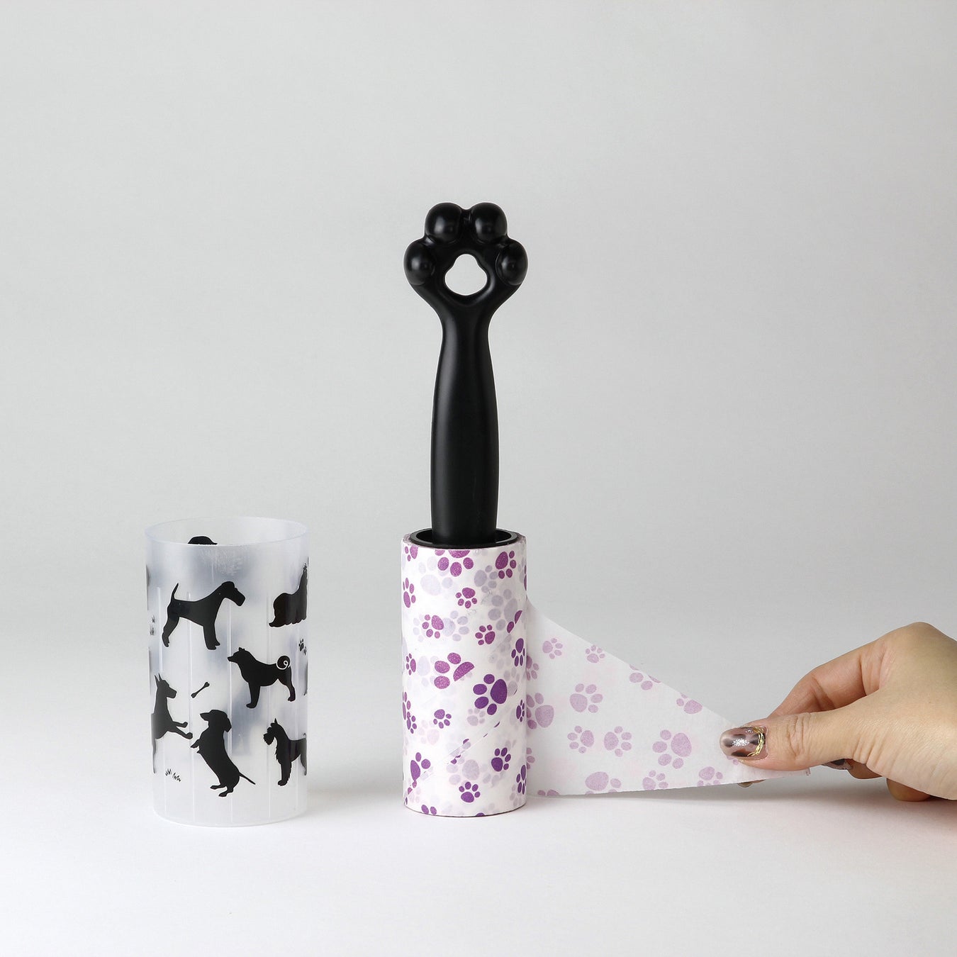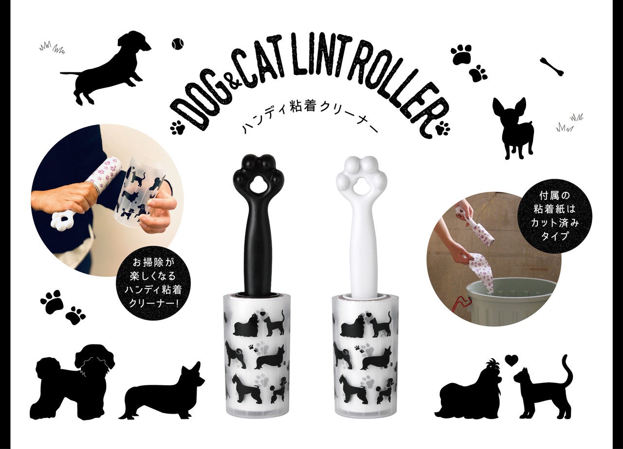 ケースには犬や猫のシルエットプリントが施されており、シンプルで見た目が可愛らしく、出しっぱなしでもおしゃれです。犬猫好きにはたまらない丸みのある肉球型の持ち手もコロコロするたびに癒されます。